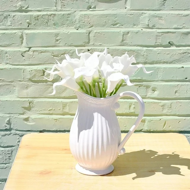 Dimensiuni impresionante: Cu o inaltime totala de 13.5 inch (35 cm) si un diametru al fiecarei flori de 3 inch (8 cm), aceste flori de Crin Calla aduc un impact vizual remarcabil. Fiecare pachet contine 20 de bucati de flori, astfel incat veti avea suficiente pentru a crea aranjamente spectaculoase.