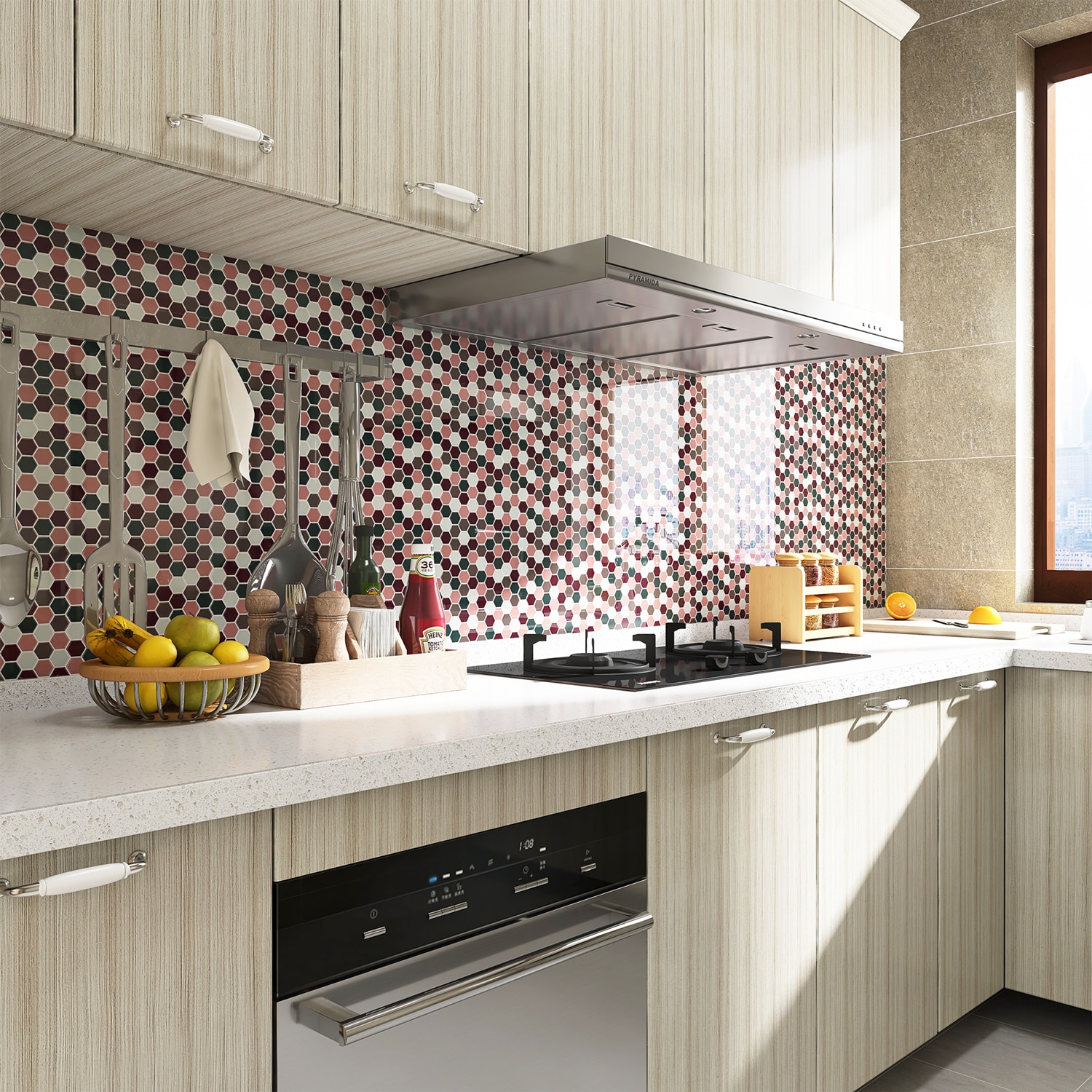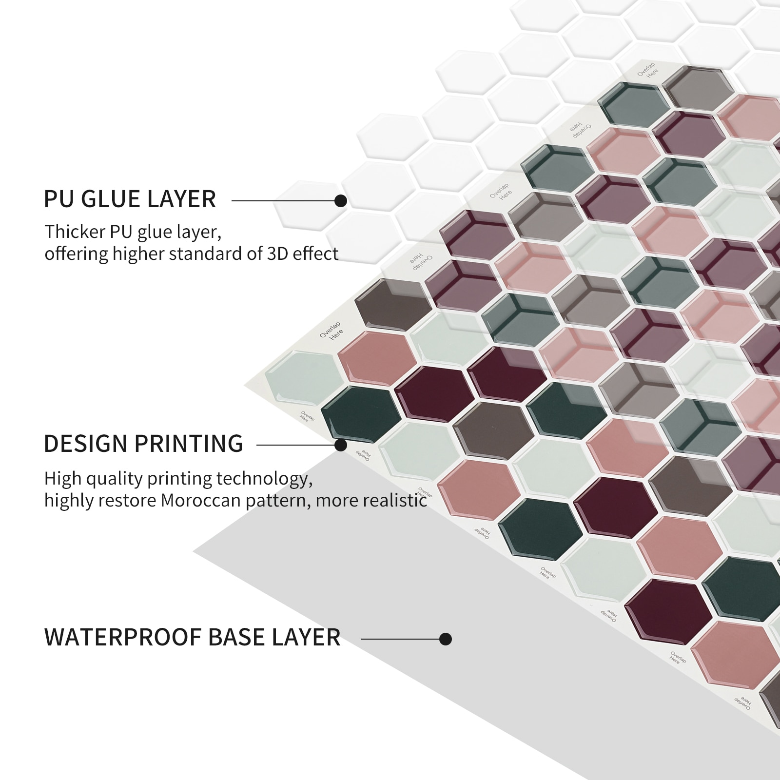 Usor de instalat: doar decojiti si lipiti! Fara lipici, fara mizerie, fara chit, fara unelte profesionale, fara experienta necesara. Cea mai buna calitate: Fabricat din materiale de inalta calitate ecologice, rezistente la caldura si umiditate, usor de sters petele. Versatilitate: functioneaza pe orice suprafata neteda, curata si plana. Cum ar fi: sticla, metal, pereti vopsiti netezi, ceramica, placi vechi si alte suprafete similare. DECORARE DIY: Ofera usor si rapid spatarul bucatariei tale, peretelui bucatariei, peretelui baii, peretelui caracteristic sau spalatoriei un aspect modern si actualizeaza-l cu decorul personalizat.