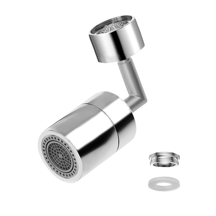 ATENTIE LA DIMENSIUNE: Aeratorul de robinet este 55/64 inch-27UNS aerator cu filet femel (Daca robinetul dvs. este filet tata, conectati-l direct). A fost inclus un adapter cu filet masculin de 15/16 inch-27UNS (daca robinetul dvs. este filet femel, utilizati adaptorul pentru a conecta). Oferim o garnitura pentru o etansare mai buna. VA RUGAM SA VERIFICATI DIAMESTRUL ROBIEI INAINTE DE A PLASA O COMANDA. Rotire la 720°: Acest aerator pivotant pentru robinet pentru chiuveta poate fi rotit la 720 de grade si poate fi indoit sau pliat cu usurinta, astfel incat fluxul de apa sa poata ajunge in fiecare colt al chiuvetei, curatarea mai convenabila. Doua moduri de iesire a apei: Acest aerator pivotant pentru robinet pentru chiuveta este echipat cu doua moduri de comutare a iesirii apei: curgere de bule moale si pulverizare puternica de apa. Puteti comuta cu usurinta intre doua moduri, rotind partea de varf a aeratorului. Puteti ajusta puterea de apa si presiunea apei in functie de nevoile dvs. reale. Acest lucru ajuta la minimizarea stropilor de apa si a deseurilor, oferind in acelasi timp eficient nevoile dumneavoastra. Utilizator de instalat: Instalat direct cu mainile fara unelte. Indiferent daca robinetul dvs. este barbat sau femeie, adaptorul si garniturile sunt incluse in pachet, astfel incat sa puteti instala direct dupa ce primiti aerator pentru chiuveta. Aplicatie larga: Acest aerator universal pentru robinet poate fi montat pe robinete de bucatarie, chiuveta, robinete de baie si robinete de toaleta. Pulverizator cu difuzor de robinet Aeratorul de robinet care economiseste apa are o mare flexibilitate pentru a face apa sa ajunga oriunde doriti. Cum se instaleaza: 1.Opriti aeratorul vechi al robinetului 2.Porniti aeratorul in sensul acelor de ceasornic 3.Daca robinetul dvs. are filet mama, va rugam sa utilizati adaptorul (inclus) pentru a conecta cand cumperi aerul feminin. Trebuie sa insurubati adaptorul utilizat surubelnita, foarfeca sau alte instrumente pe care le puteti obtine pentru a insuruba adaptorul. Specificatie: Material: Cupru, ABS Culoare: Argintiu Mod de apa: 2 moduri de apa Greutate: 80g Robinet disponibil: 22mm – 24mm Lista pachetelor: 1 * Aerator de robinet-fema 55/64 inch-27UNS 1 * Adapter filetat tata 1 * Saiba