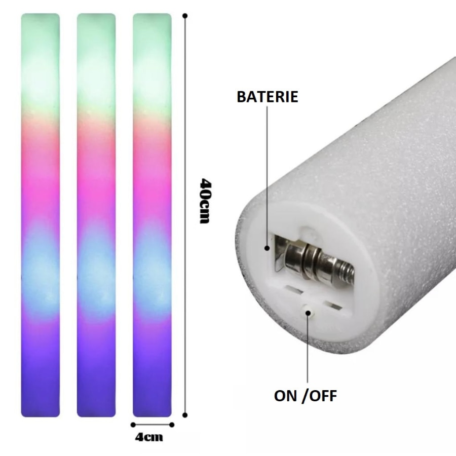 Bagheta din spuma cu LED RGB multicolor, flexibil, ideal pentru cadouri, petreceri sau evenimente in aer liber.