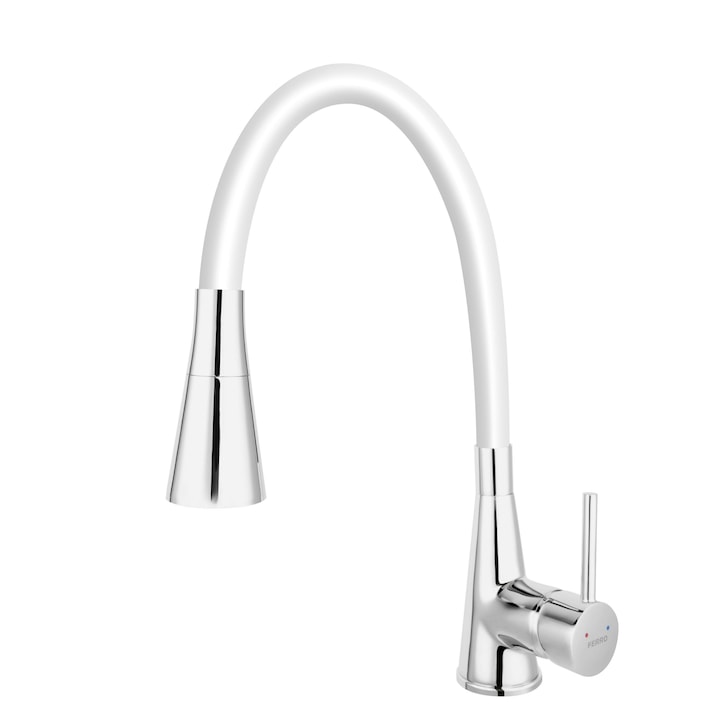 Baterie de chiuveta Ferro Zumba II cu o singura maneta, gura flexibila cu 2 functii, alb |