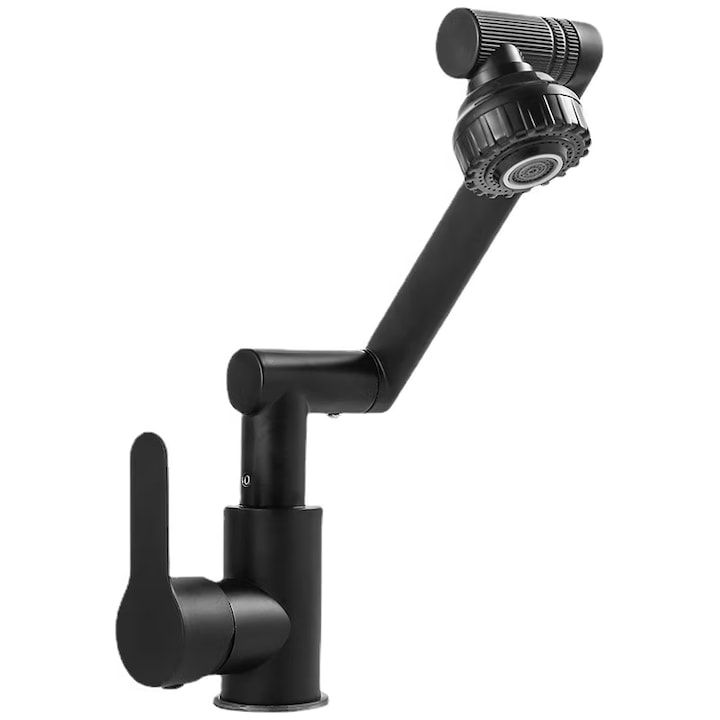 Baterie cu brat motorizat, MOSMAOO®, 2 functii de curgere, Inox, Rotire 1080, Negru