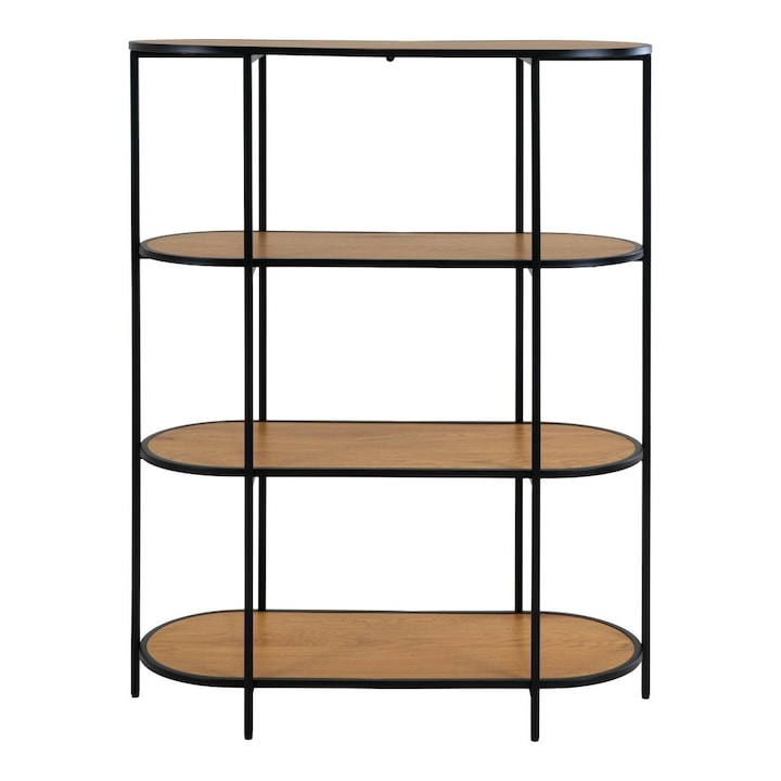 Biblioteca ovala ArtPro, Metal/Lemn, Negru/Stejar