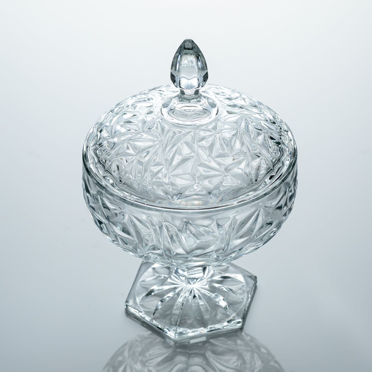 Home Decoratiuni Decoratiuni Interioare Vaze si boluri decorative Bomboniera sticla, cu picior si capac, 1000ml, 16x25cm