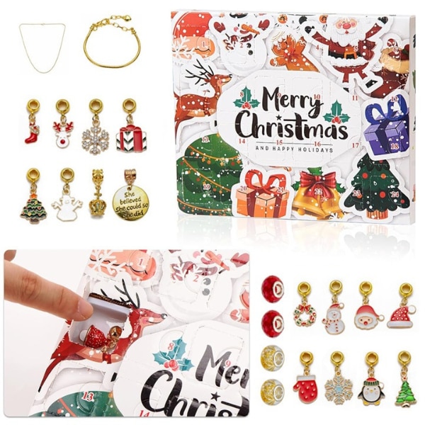 Continutul Pachetului: Vei primi 1 calendar de Advent pentru Craciun, ce include 1 bratara, 1 colier si 23 de brelocuri decorative. Designurile diverse si dragute, cum ar fi Mos Craciun, bradul de Craciun, caciulita, cutie cadou, sosete, fulgi de nea, coronita si multe altele, adauga o nota festiva si delicata.