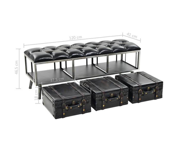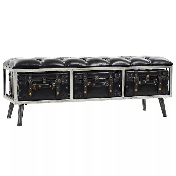 Canapea tip banca depozitare, pentru intrare, vidaXL, lemn si tapiterie textila, Negru, 120 x 41 x 46.5 cm