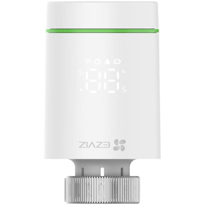 Cap termostatic inteligent Ezviz T55, pentru calorifer, cu conexiune Zigbee, distanta de comunicare in mediu deschis de 100 m