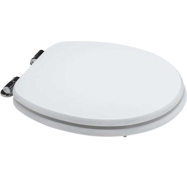 Capac WC universal Savini Due, din MDF, 37.5×5.5×44.3cm, grosime material 18mm, antibacteric, cu balamale metalice, soft close, alb opac