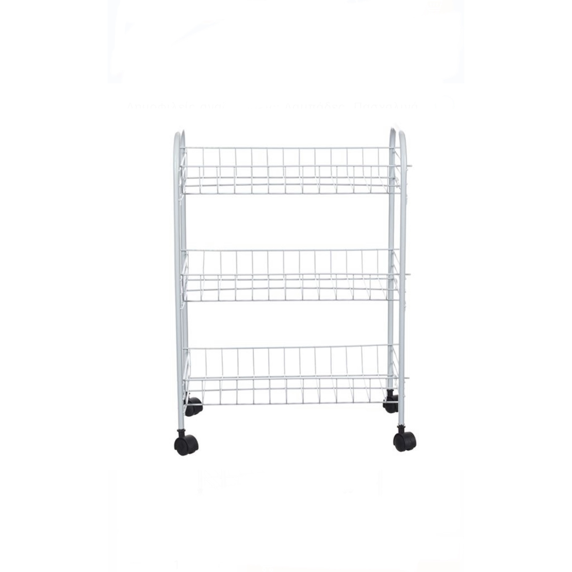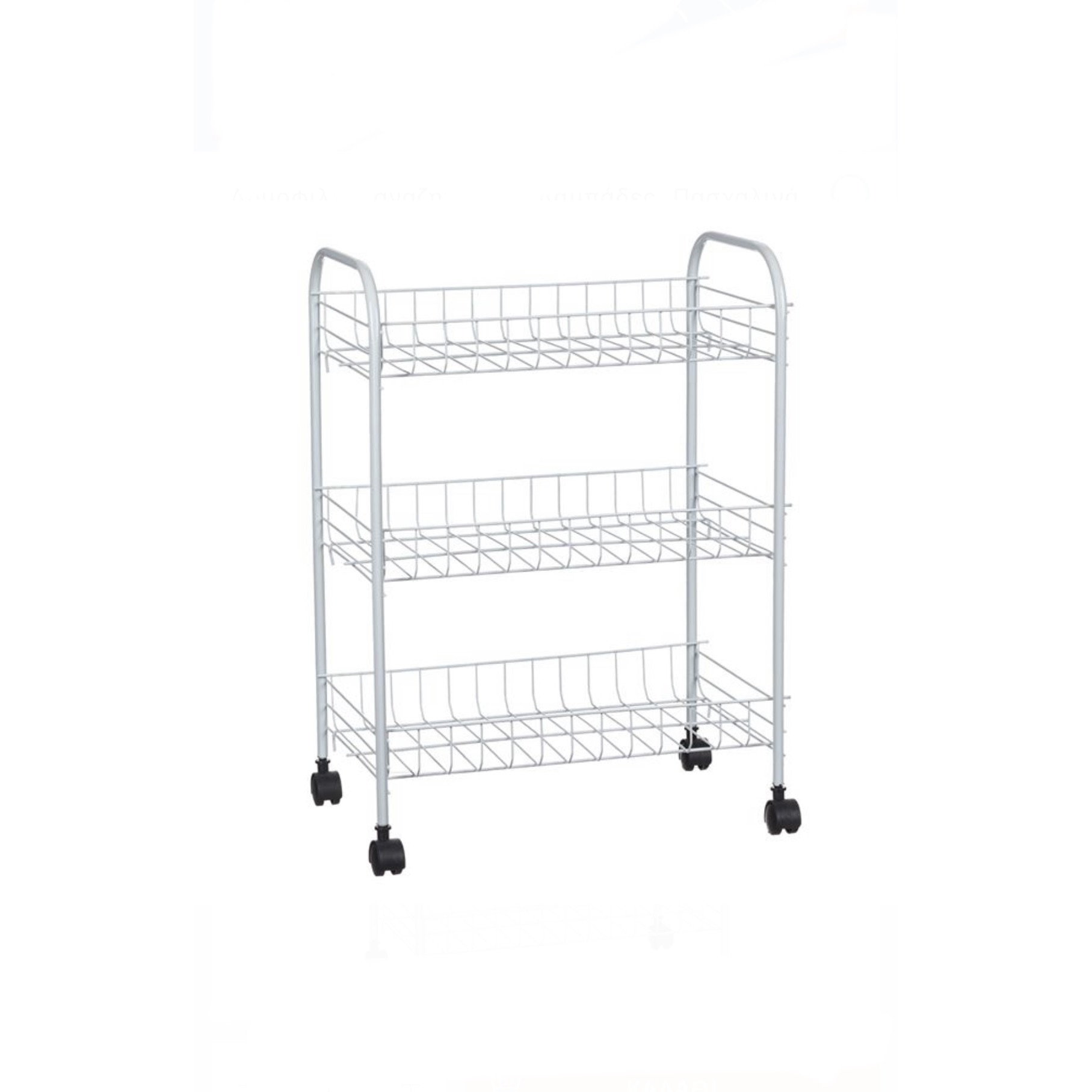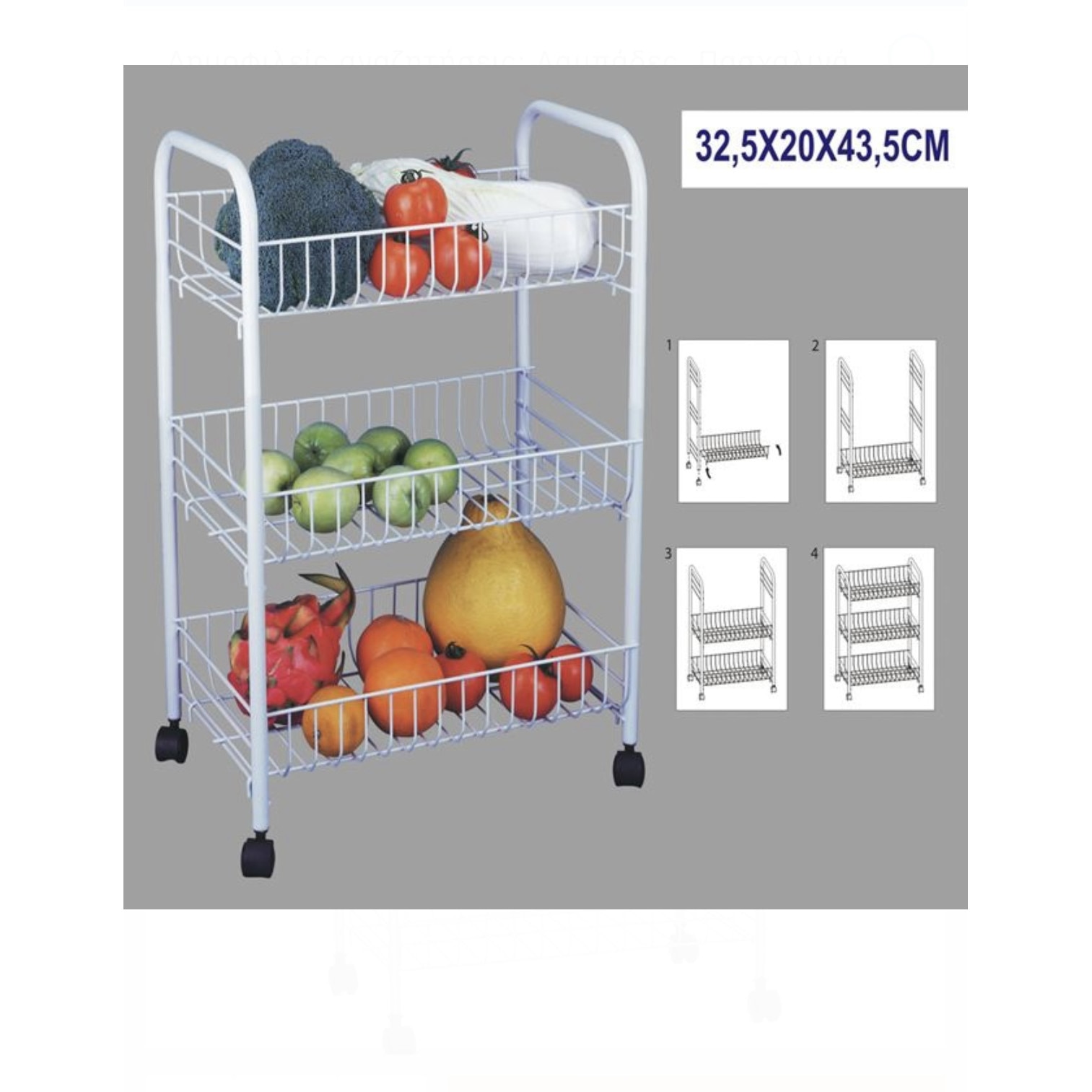 Carucior bucatarie cu 3 nivele pentru depozitare/organizare, metal/plastic, alb, 32,5x20x43,5 cm