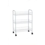 Be the first to review “Carucior bucatarie cu 3 nivele pentru depozitare/organizare, metal/plastic, alb, 32,5x20x43,5 cm” Anulează răspunsul