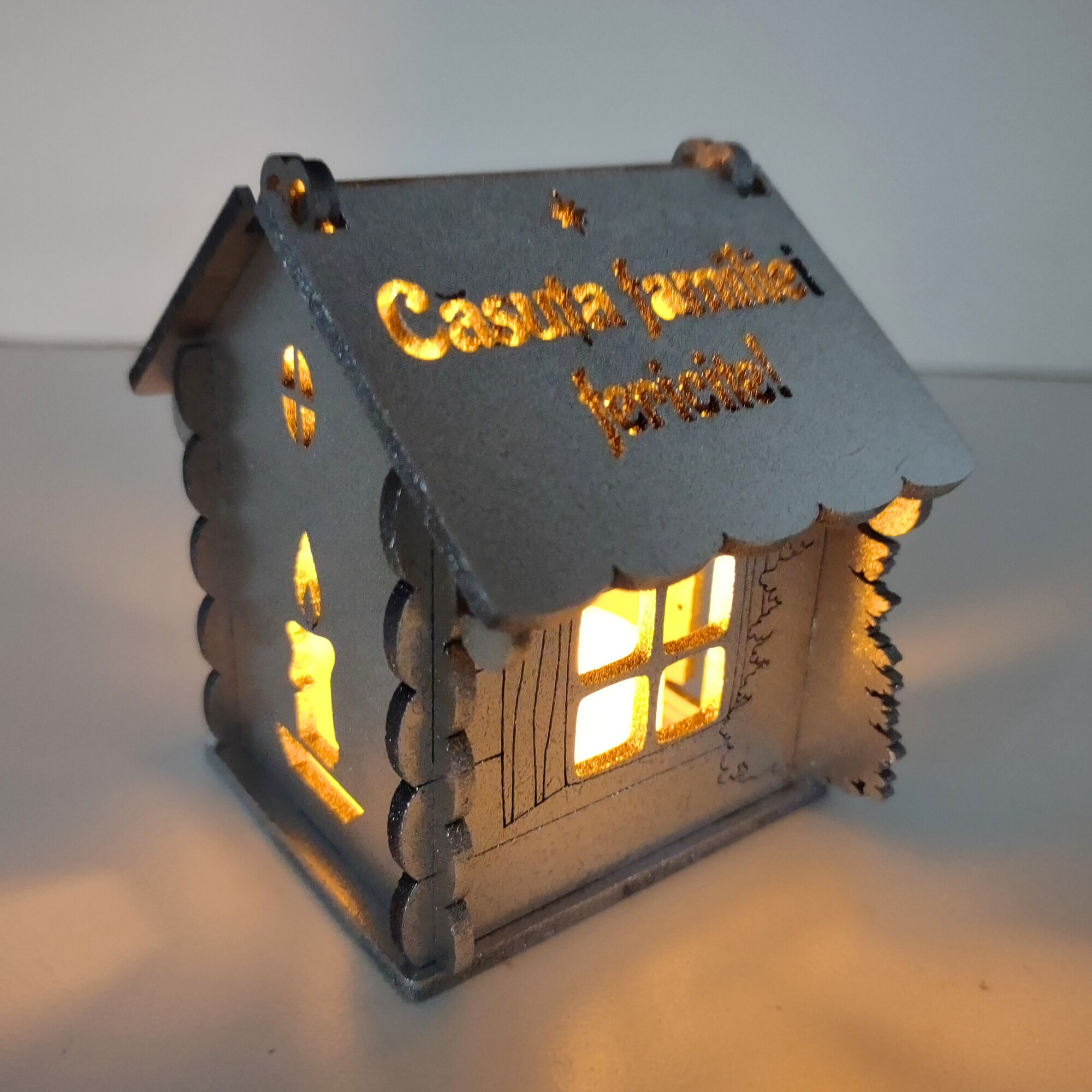 Casutele din lemn sunt taiate cu ajutorul tehnologiei laser si montate de catre spiridusii Mosului chiar la noi in atelier.