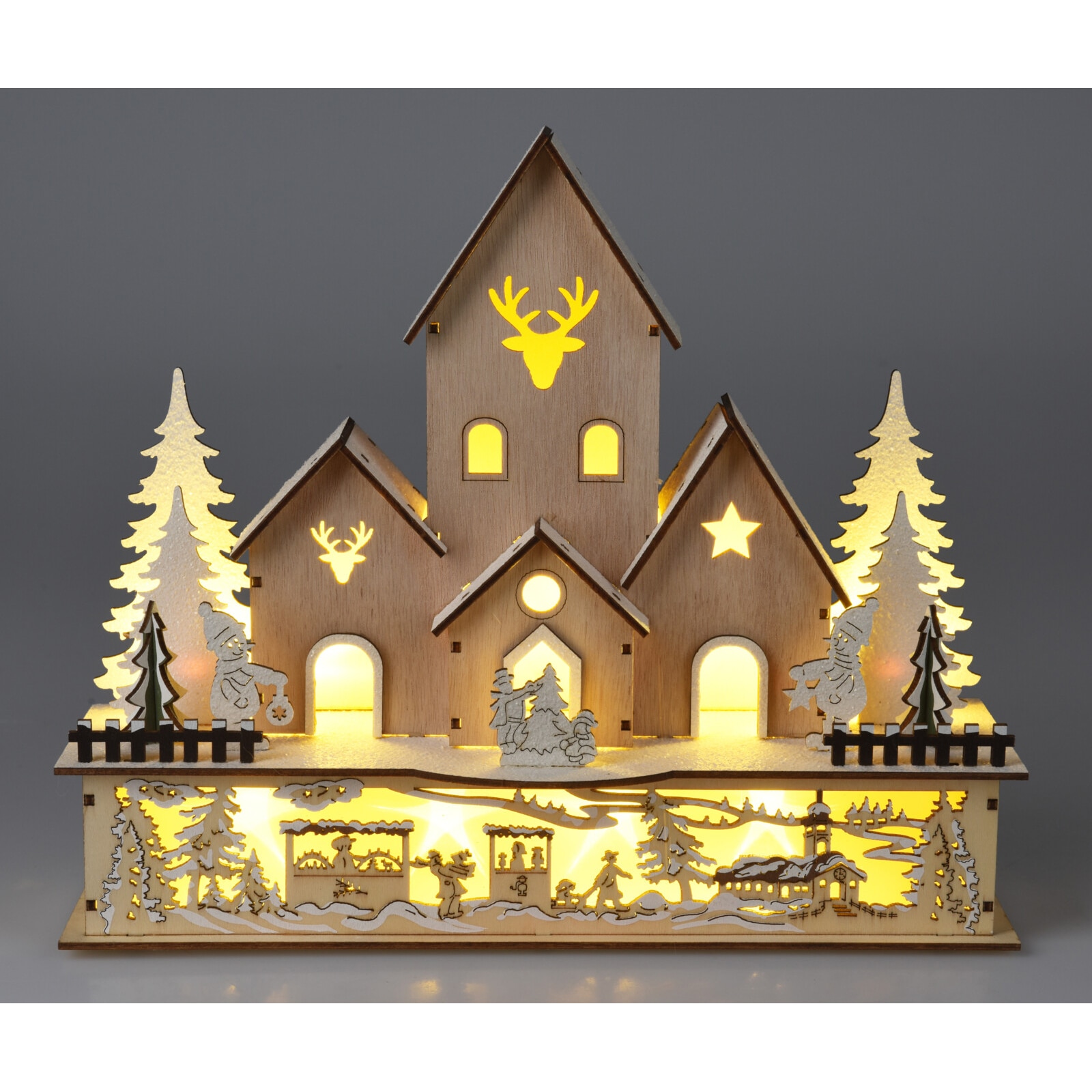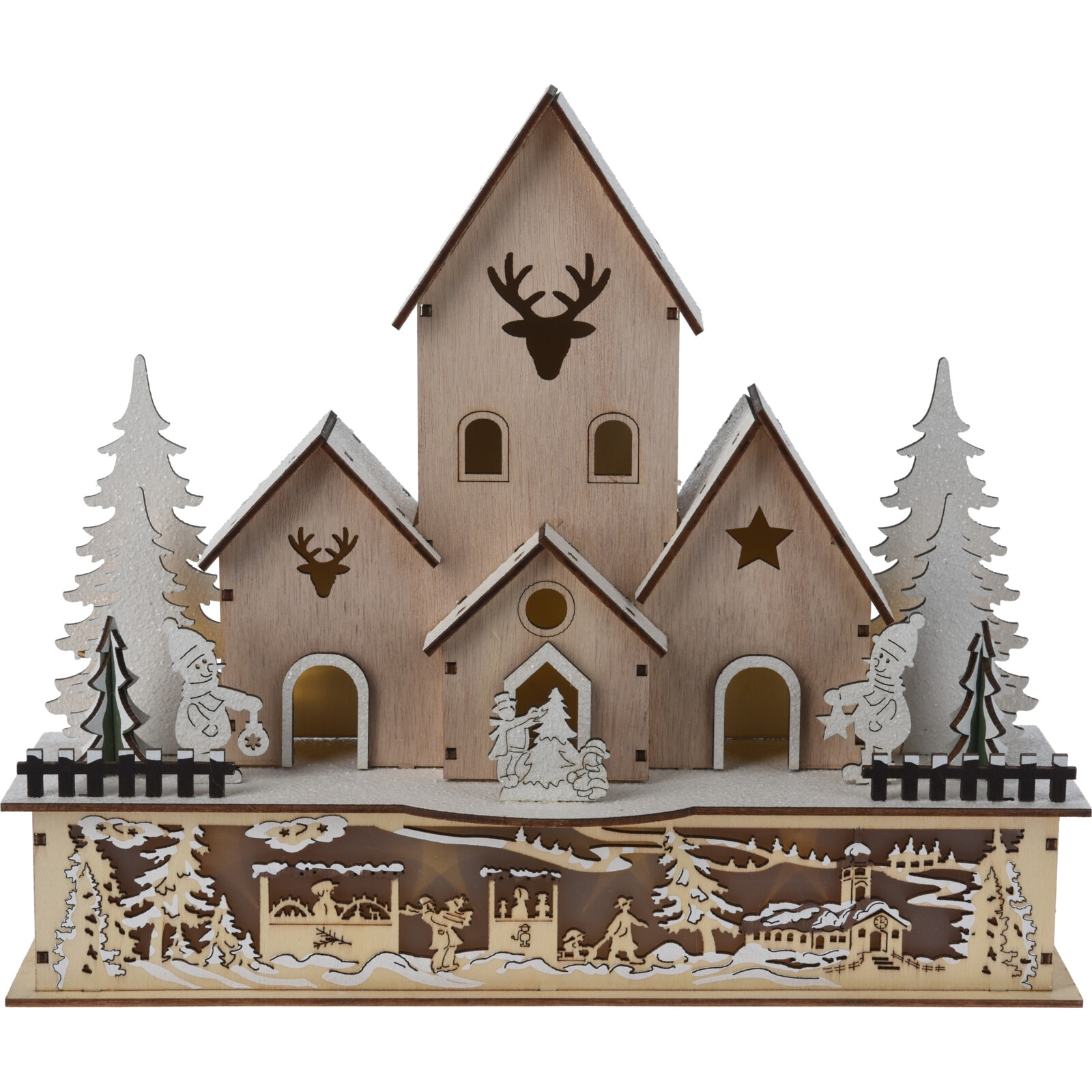 Casuta decorativa cu 10 LED-uri alb-cald Village, 30x9.7xH25 cm, lemn
