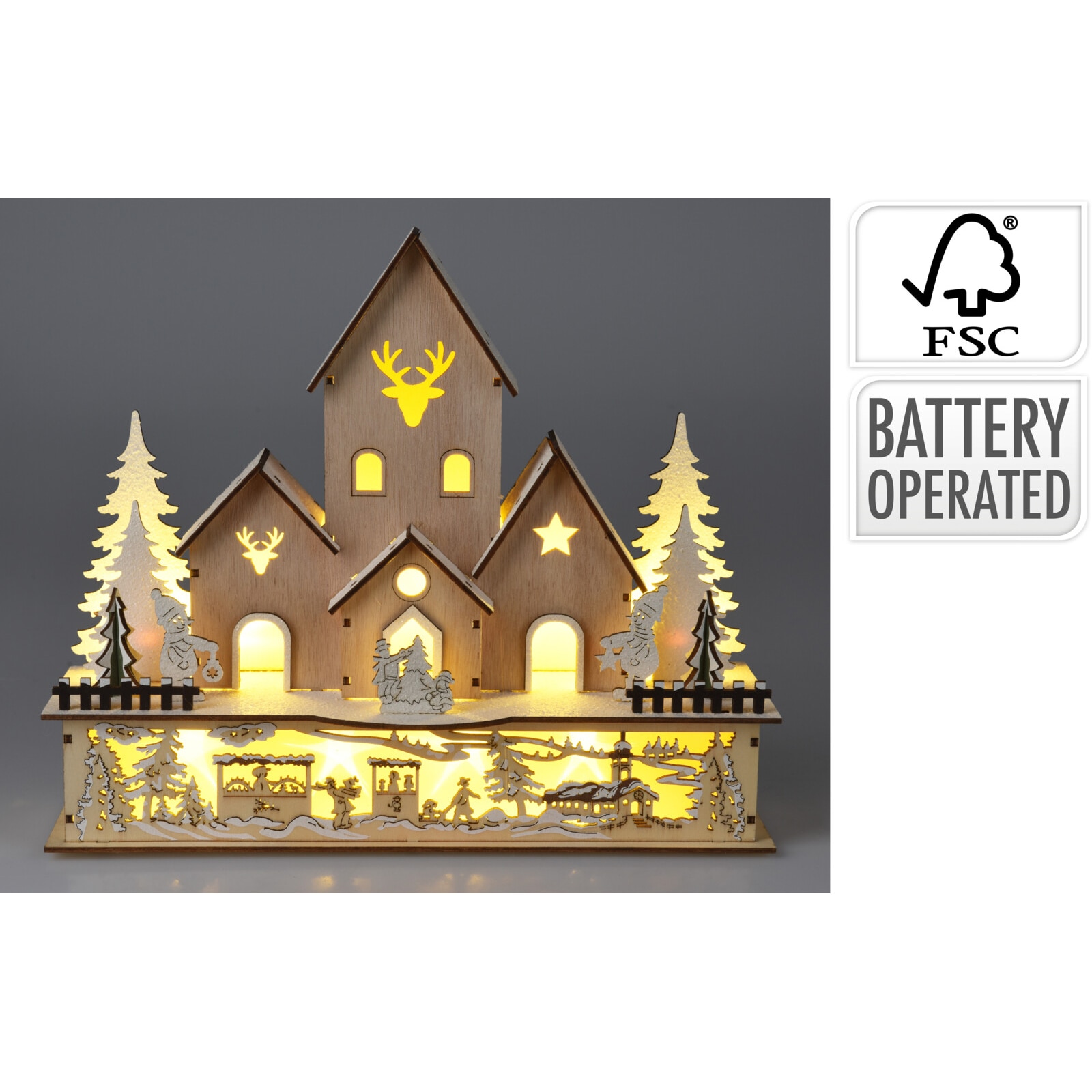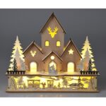 Casuta decorativa cu 10 LED-uri alb-cald Village, 30×9.7xH25 cm, lemn