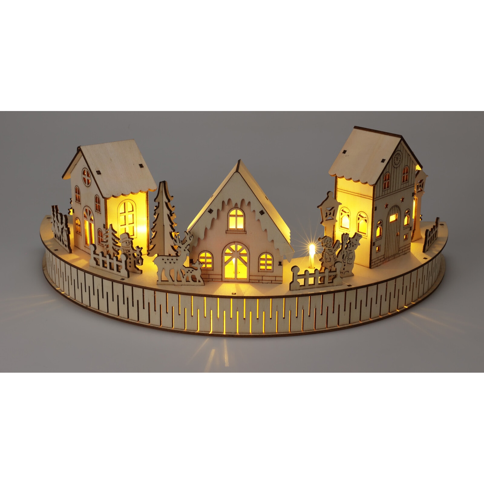 Casuta decorativa cu 10 LED-uri alb-cald Village, 40x20xH16.5 cm, lemn