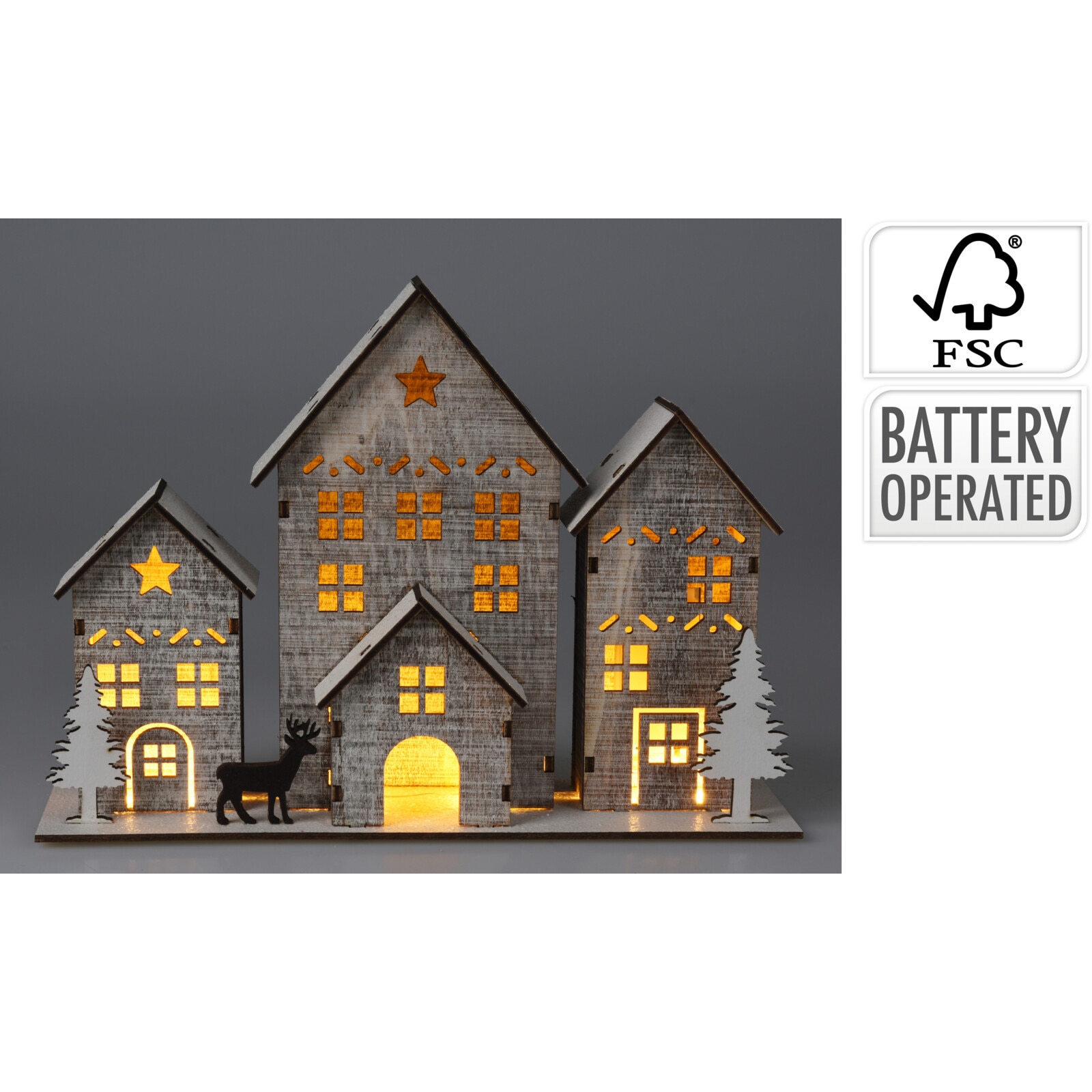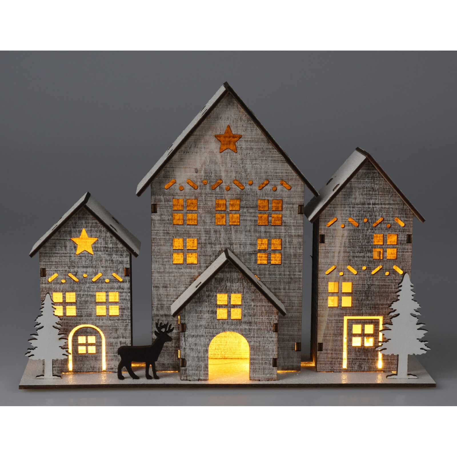 Casuta decorativa cu 6 LED-uri alb-cald Houses, 25x8xH18 cm, lemn