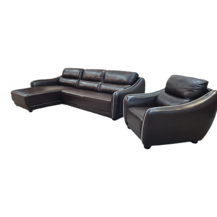 Coltar living modern, si fotoliu din piele maro, va va satisface cei mai pretentiosi clienti care cauta produse la moda, functionale si care se disting printr-o calitate deosebita cea mai inalta calitate. Setul se recomada prin liniile drepte insa cu un stil aparte. Adauga o nota de rafinament si modernitate spatiului tau de locuit cu un coltar living modern si un fotoliu din piele maro. Designul contemporan al coltarului se integreaza perfect in orice decor, oferind atat un aspect estetic placut, cat si functionalitate sporita. Fotoliul din piele maro adauga un touch de lux si calitate, asigurand o experienta de relaxare suprema. Alege confortul si stilul pentru casa ta cu aceasta combinatie perfecta de mobilier modern si eleganta clasica.