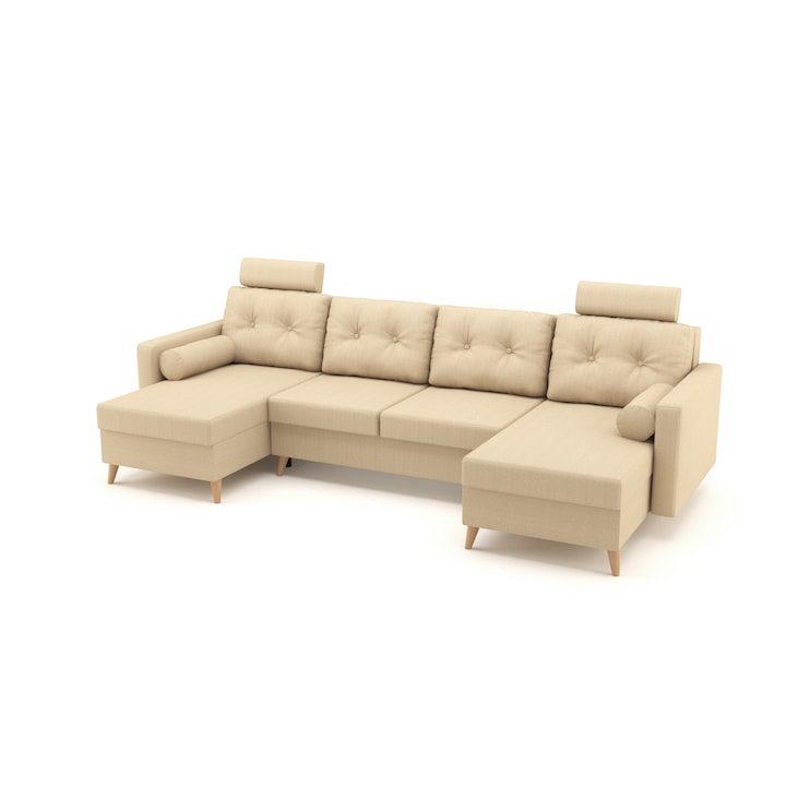 Produsul este dotat cu un sistem simplu de montare si se monteaza in circa 10 minute. Coltarul se extinde din 2 miscari usoare, transformandu-se intr-un pat confortabil. Lada de depozitare are o capacitate de 170 litri, si este dotat cu gauri de aerisire. Datorita inaltimei picioarelor de 12 cm, suprafata de sub canapea se curata cu usurinta si cu aspirator robot.