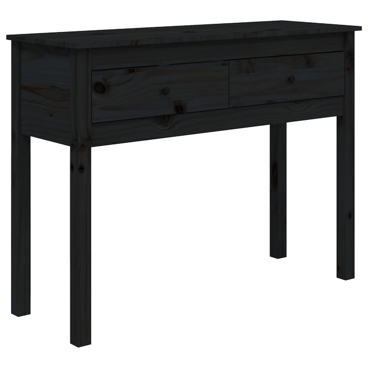 Adauga o nota de frumusete spatiului tau cu aceasta masa clasica din lemn! Va fi un plus practic si decorativ pentru decorul casei tale. Lemn masiv de pin: Lemnul masiv de pin este un material natural frumos. Lemnul de pin are linii drepte, iar trandafirii dau materialului aspectul caracteristic, rustic. Cadru stabil: Cadrul din lemn asigura robustete si stabilitate. Spatiu amplu de depozitare: Aceasta masa de hol are 2 sertare, oferind suficient spatiu de depozitare pentru a va pastra obiectele de zi cu zi organizate si la indemana. Suprafata solida: Suprafata acestei mese laterale este ideala pentru asezarea obiectelor decorative, rame de tablouri si ghivece de flori. Aplicatie larga: Aceasta masuta de cafea se va potrivi in orice parte a casei tale. Poate fi folosit ca masa de intrare,masa de canapea, masa de consola etc. Avertisment: Pentru a preveni rasturnarea, acest produs trebuie utilizat impreuna cu accesoriul de montare pe perete furnizat. Nota: Fiecare produs vine cu un manual de asamblare in cutie pentru asamblare usoara.