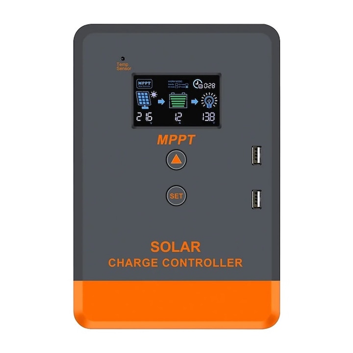 Home Sanitare Sisteme incalzire Componente si accesorii sisteme si panouri solare Controler Solar, MPPT, Eficienta 97%, Display LCD, Negru/Portocaliu, 20A