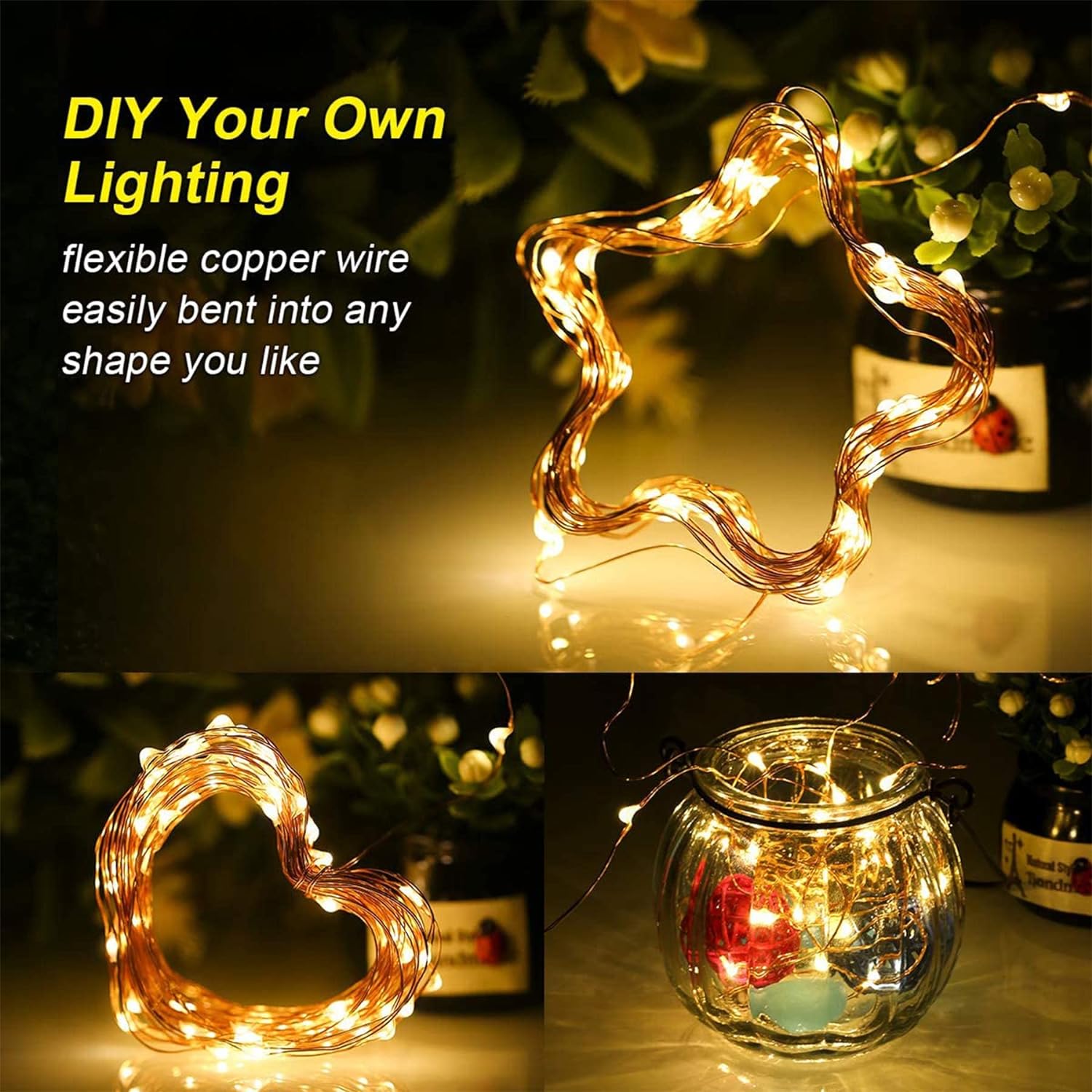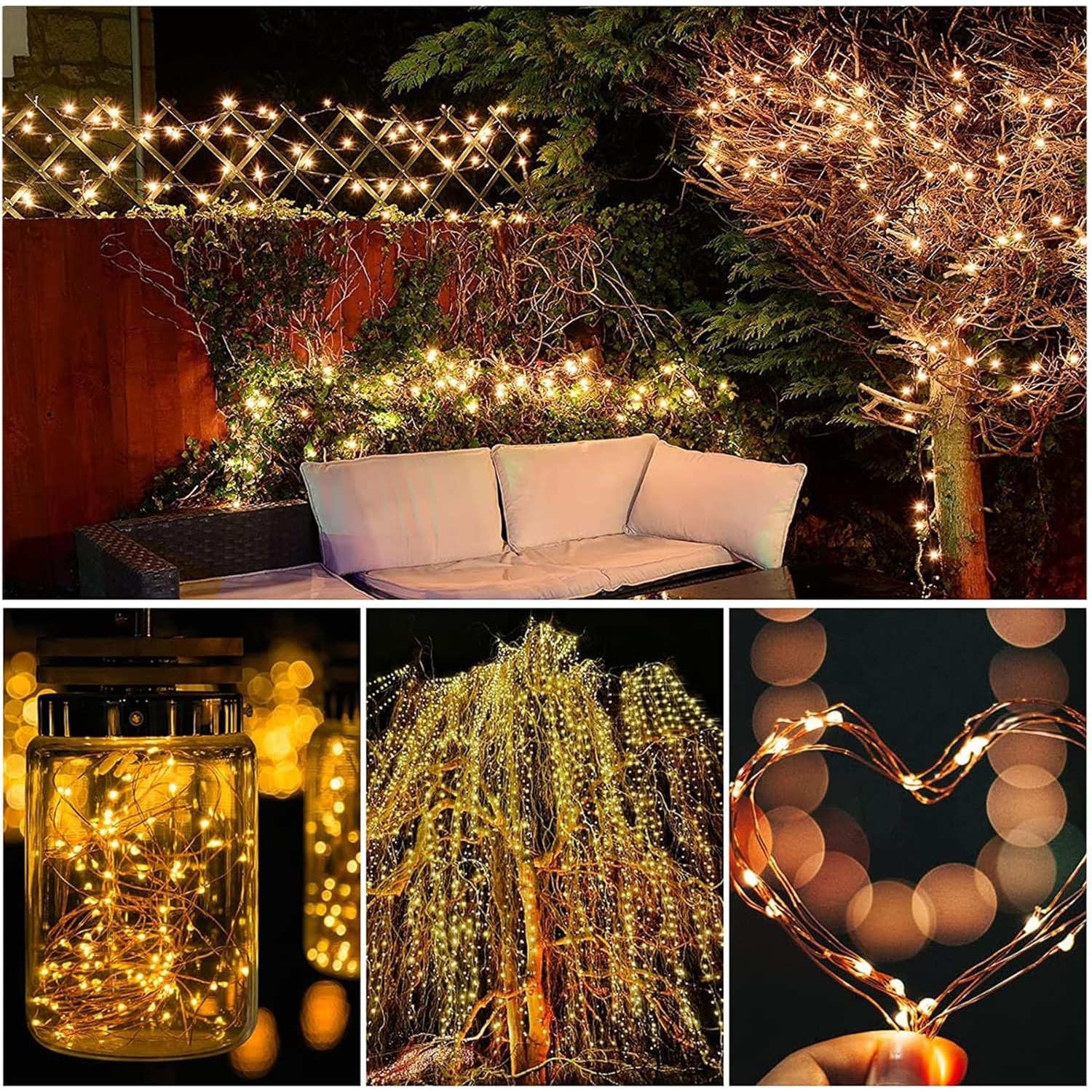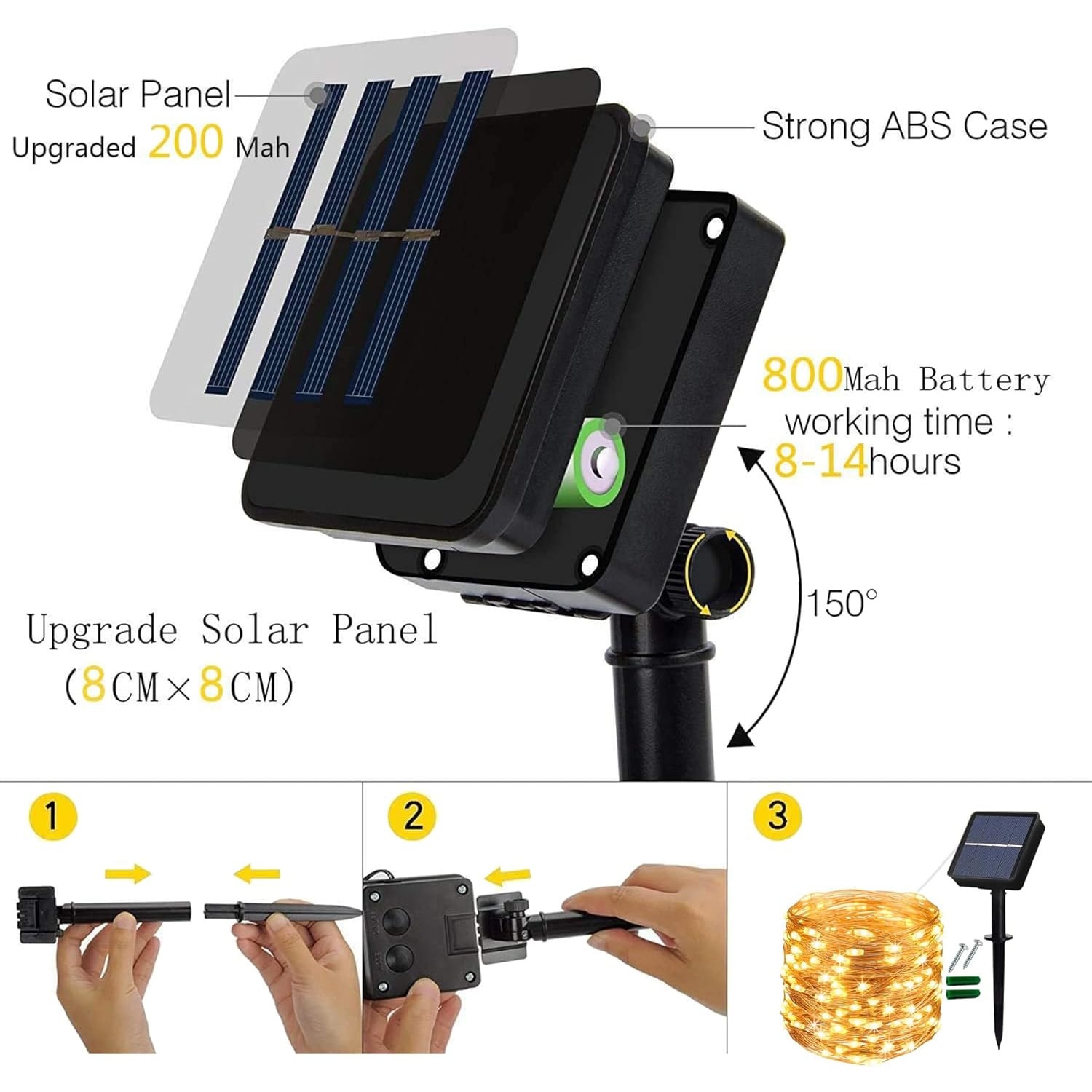 Corp de iluminat solar, JAMNGREL, cupru, 22m, 8 moduri de iluminare, 200 LED-uri, lumina calda, rezistent la apa