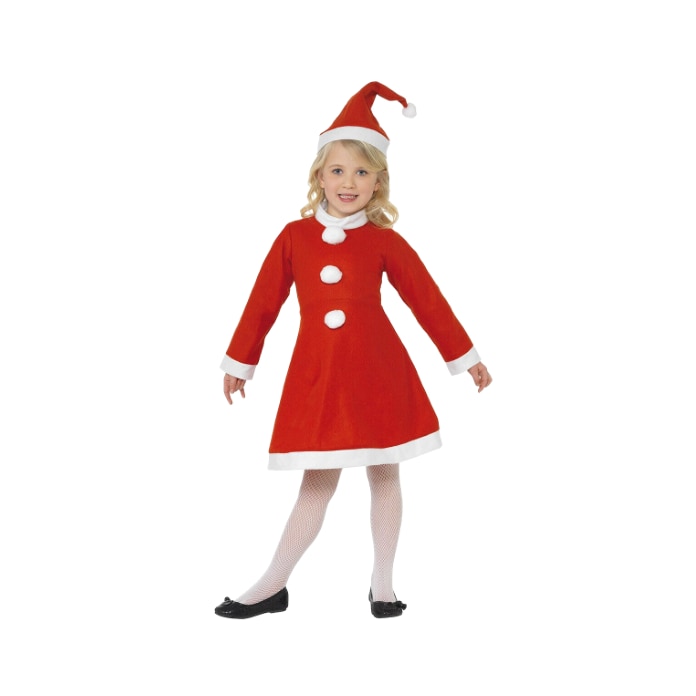 - Rochie cu margine alba si nasturi cu efect de zapada.
