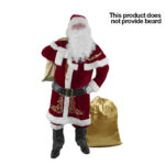 2. 【Caracteristici ale costumului de Mos Craciun】: blana artificiala care va va tine de cald atat iarna rece, cat si toamna tarzie; vartejuri ornamentate de aur si zapada; Ambalat intr-o punga de depozitare reutilizabila.