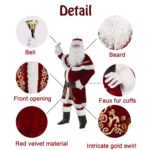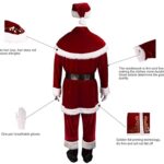 1. 【Design】 Costum de Mos Craciun din catifea de calitate superioara cu palarie asortata, pantaloni cu buzunar. Geaca se poate inchide in fata cu ajutorul fermoarului. Cureaua neagra are o catarama aurie. Doua buzunare mari sunt atasate pe lateralul pantalonilor, ideale pentru depozitarea dulciurilor.