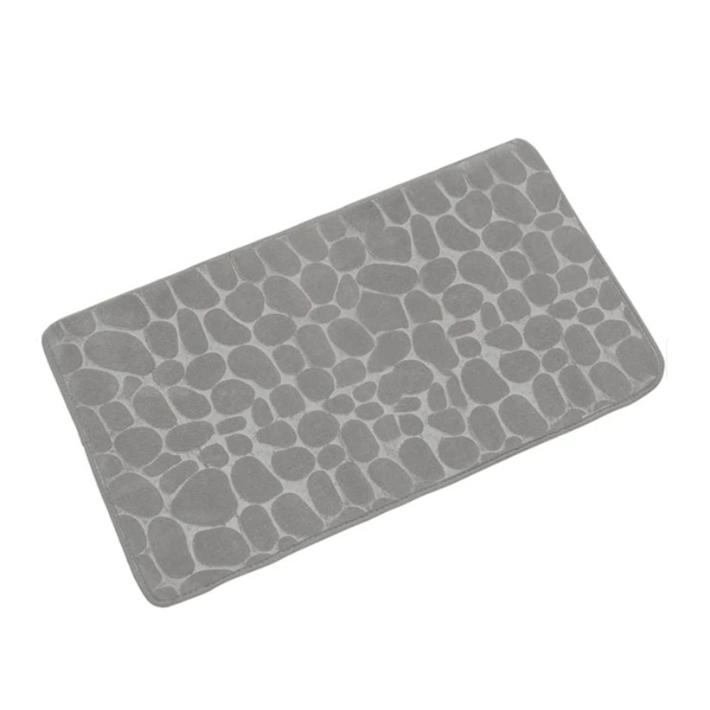 Covoras De Baie GREATON, Ultra Absorbant, Model 3D Textil, Antiderapant, Uscare Rapida, Imprimeu Pietre, Dimensiune 80 cm X 50 Cm, Gri