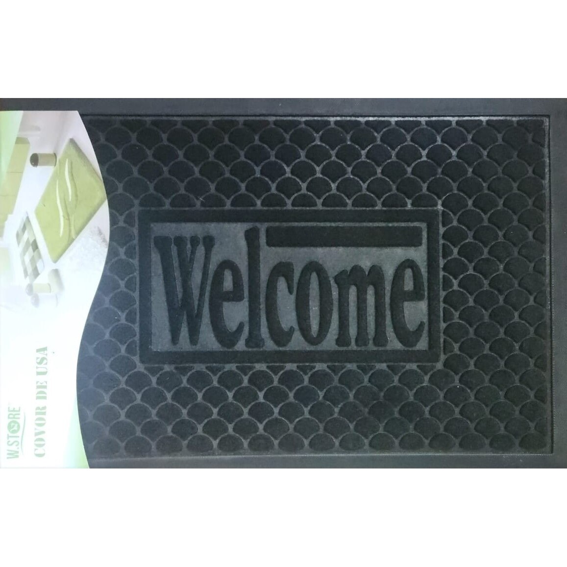 Covoras intrare absorbant antimurdarie, tip mocheta, usor de intretinut, pentru trafic intens, cu mesaj Welcome, antiderapant, 60 x 40 cm, negru