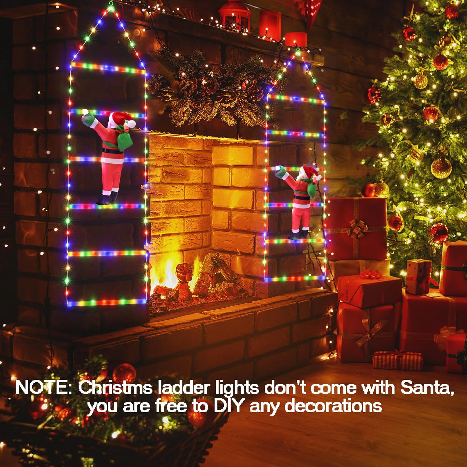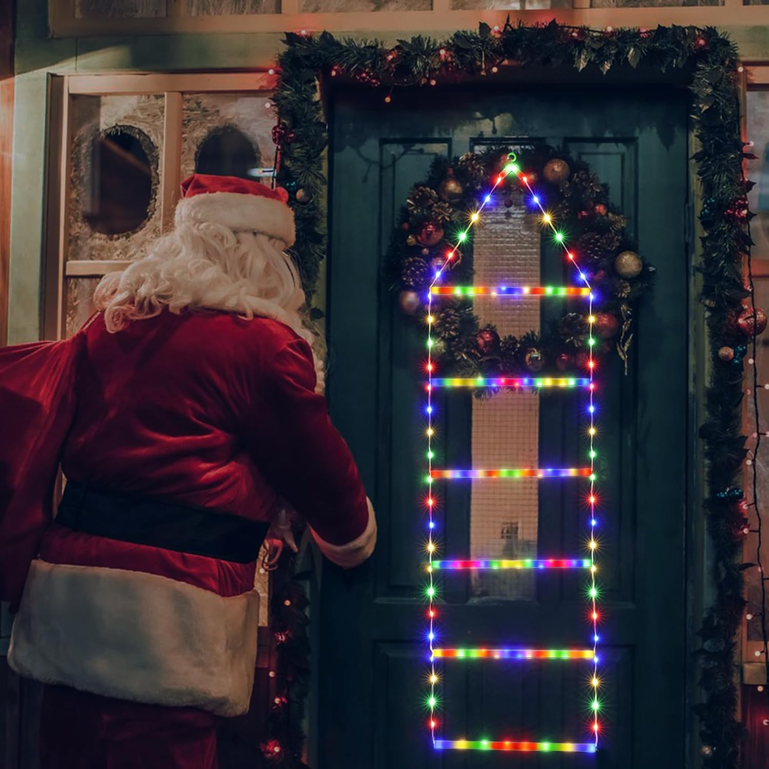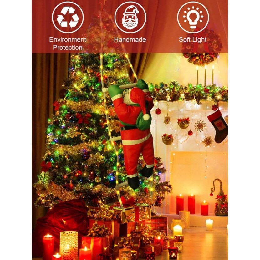 Decoratiune Mos Craciun pe Scara cu 20 LED-uri Multicolore, IP65, Dimensiune 160x25cm