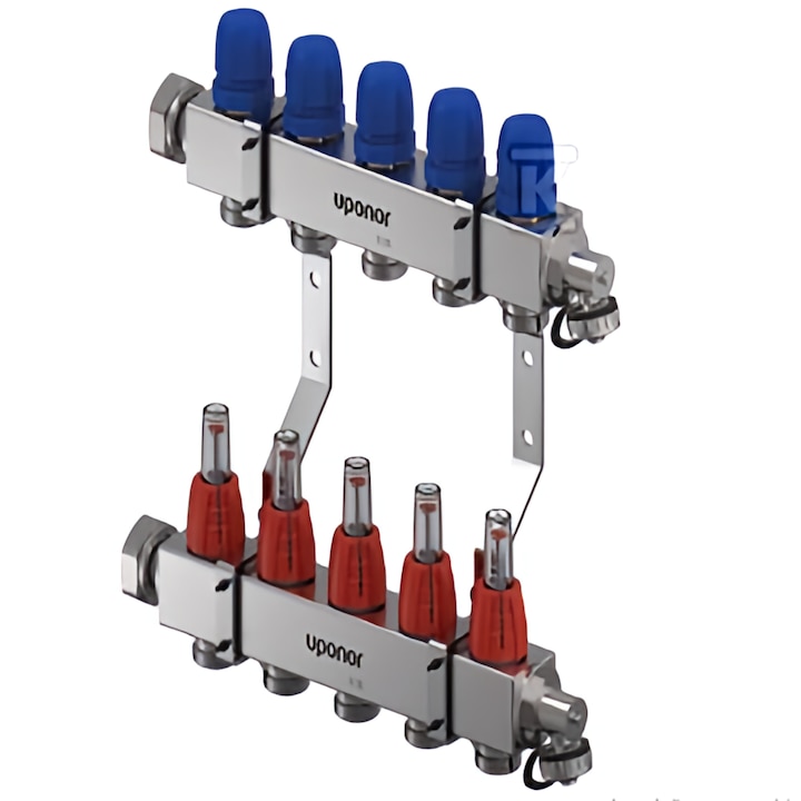 Acest colector este disponibil cu debitmetre, conexiunea bucla G3/4 euro permite conectarea tevilor Uponor de orice dimensiune, ceea ce face ca colectorul sa fie universal pentru sistemele de incalzire/racire a suprafetei Uponor.