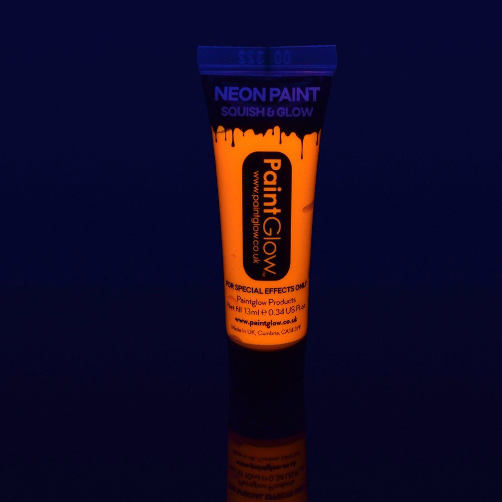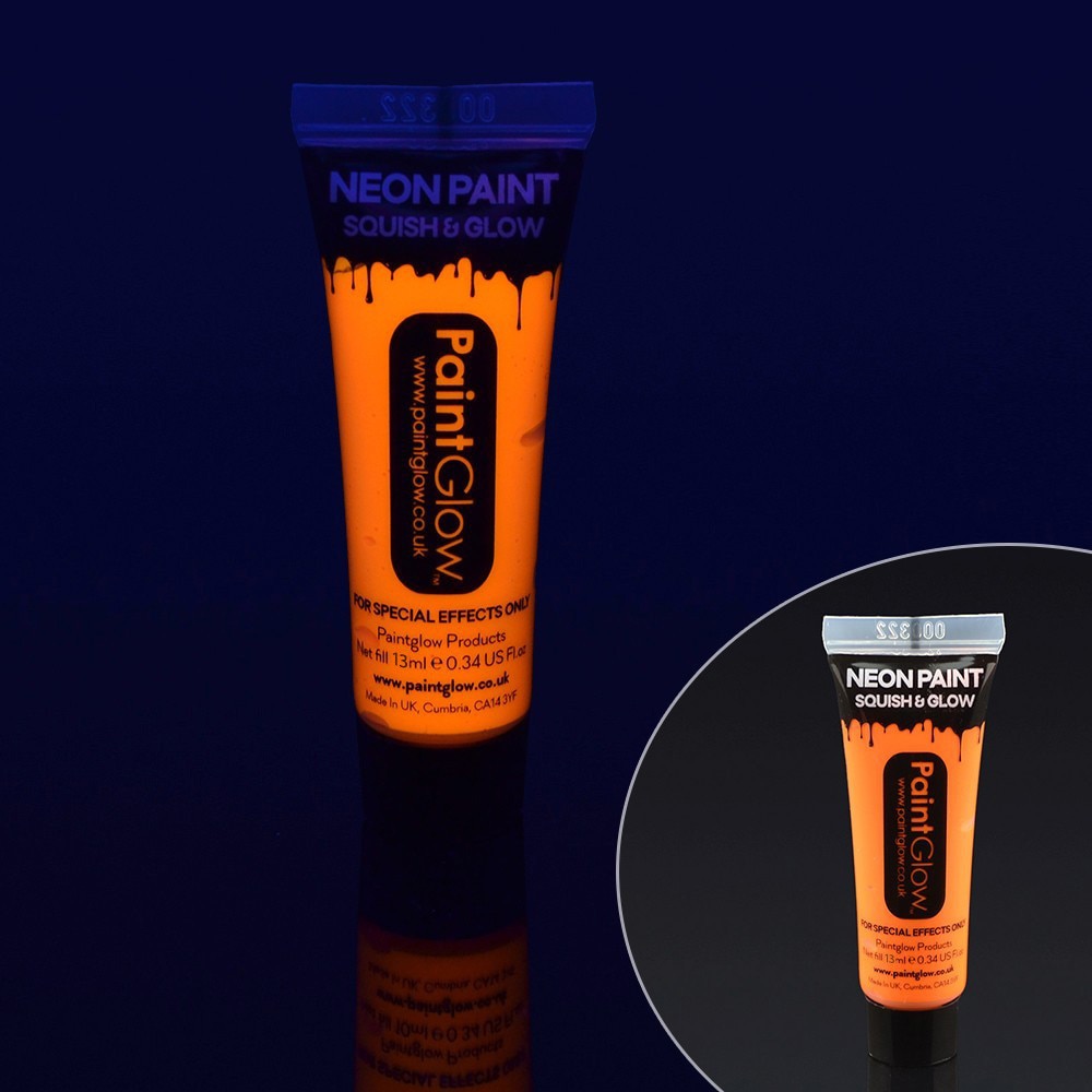 Vopsea UV Neon pentru corp si fata este creata pentru a obtine efecte fluorescente. Vopseaua inglobeaza un pigment „day glow” care aduce trasaturi fluorescente produsului. Vopseaua devine intens fluorescenta la lumina UV, intr-o masura atat de puternica incat creaza senzatia unei lumini ascunse in spatele ei. Vopseaua UV nu reprezinta nici un risc pentru piele si par. Se inlatura usor doar cu apa. Culorile se pot combina pentru a obtine nuante diferite. Un tub contine o cantitate de 13 ml de vopsea.