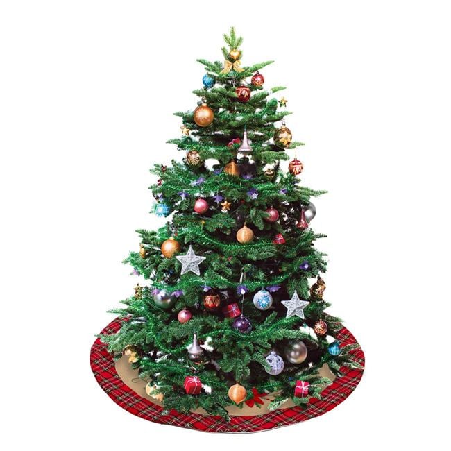Fusta pentru Brad Bej Catifelata Carouri Rosii „Merry Christmas” 90cm