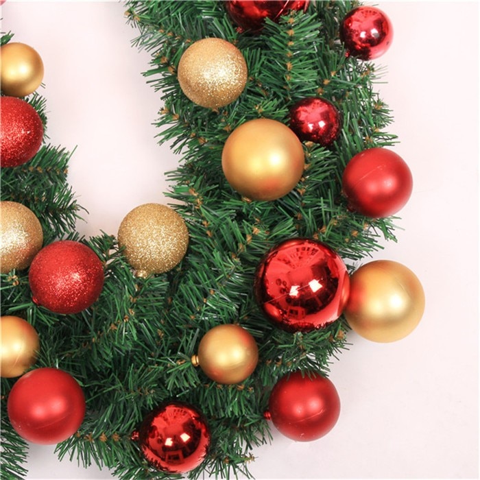 Home Decoratiuni, ornamente si articole Craciun Beteala si ghirlande Craciun Ghirlanda pentru Craciun din brad artificial, decorata cu globuri rosii si auri, 270 cm, Verde cu irizatii