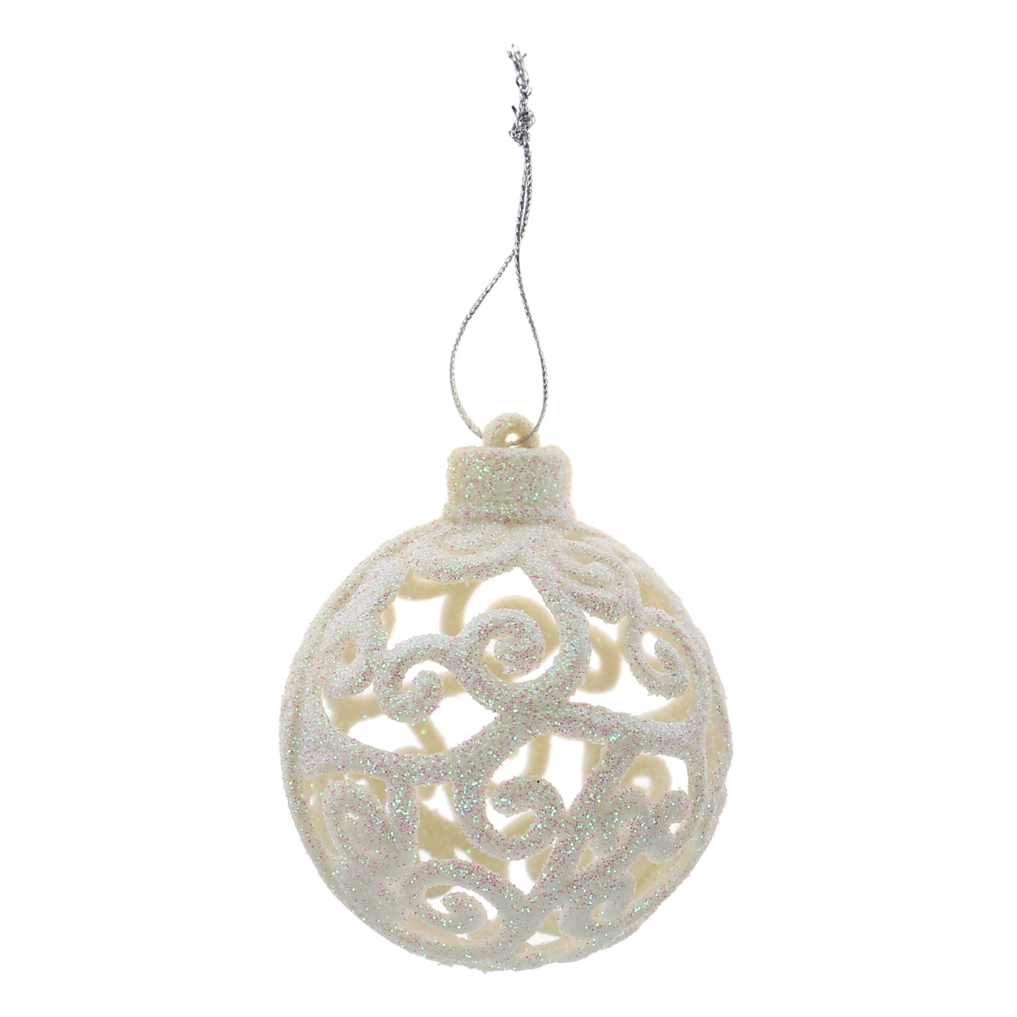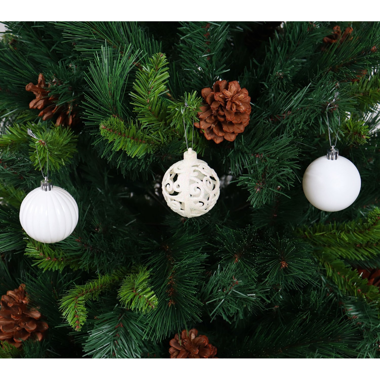 Globuri Craciun, albe, diametru 6 cm, set 24 bucati, SD19B-6-452 WH