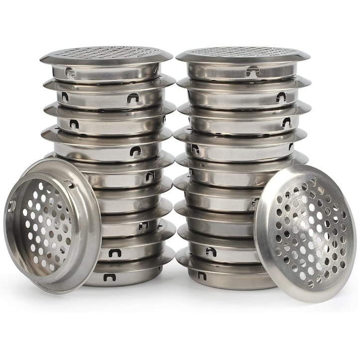 Home Sanitare Sanitare si accesorii Accesorii sisteme de ventilatie Grila de ventilatie, Inox, Potrivit pentru mobila de bucatarie, Dezodorizator camera, 53 mm, 20 buc, Argintiu