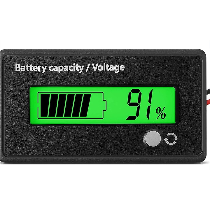 Indicator de baterie, JENUOS®, Ecran digital, Design de protectie la inversarea polaritatii, Poate masura 12V pana la 72V, Material ABS, Negru
