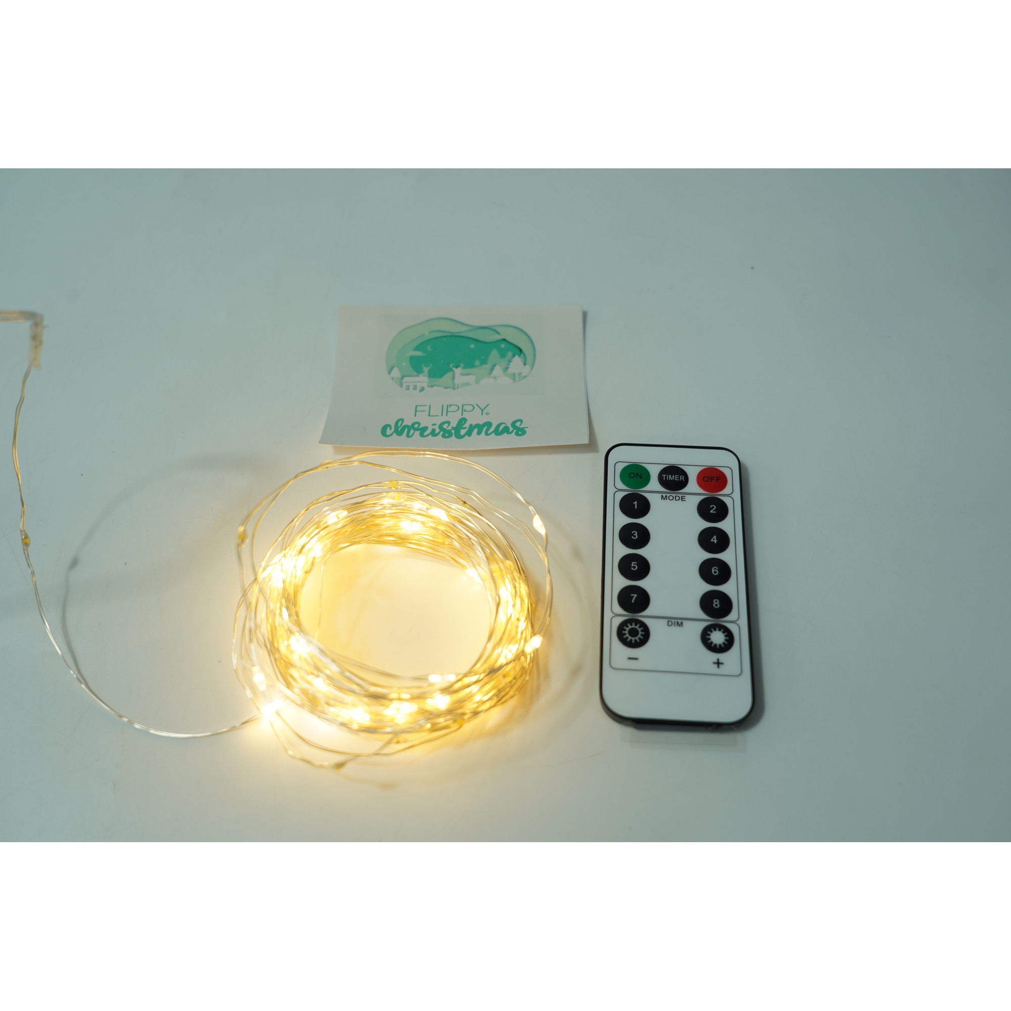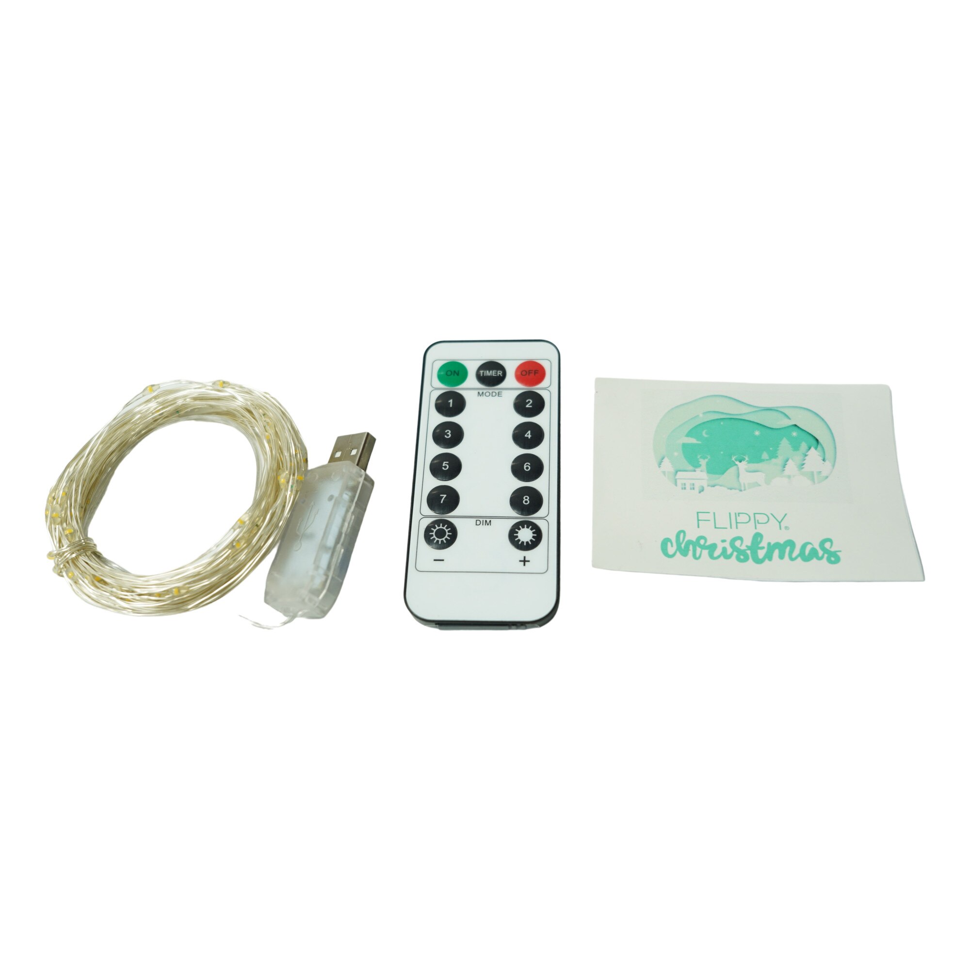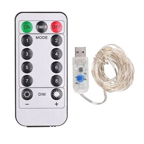 Produsul este compus dintr-o instalatie luminoasa de 10m, cu fir de cupru, o telecomanda cu 8 functii pentru diverse jocuri de lumini si alimentare prin USB.