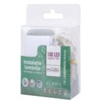 Produsul este compus dintr-o instalatie luminoasa cu fir de cupru, o telecomanda cu 12 functii pentru diverse jocuri de lumini si USB pentru conexiune la retea.