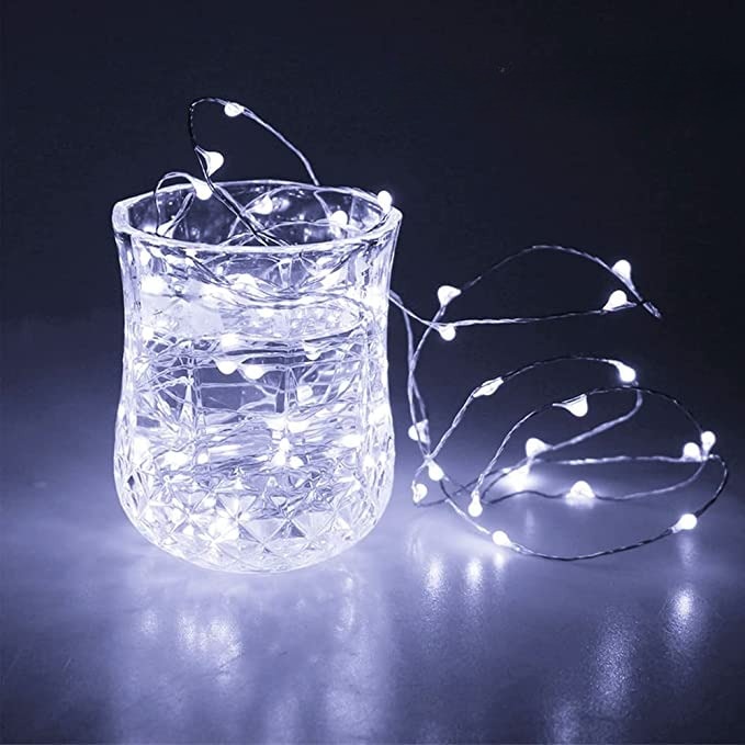 Instalatie Craciun, 5 metri, 50 LED-uri, Alb Rece, cu baterii, fir cupru, liniar, interior/exterior, Flippy