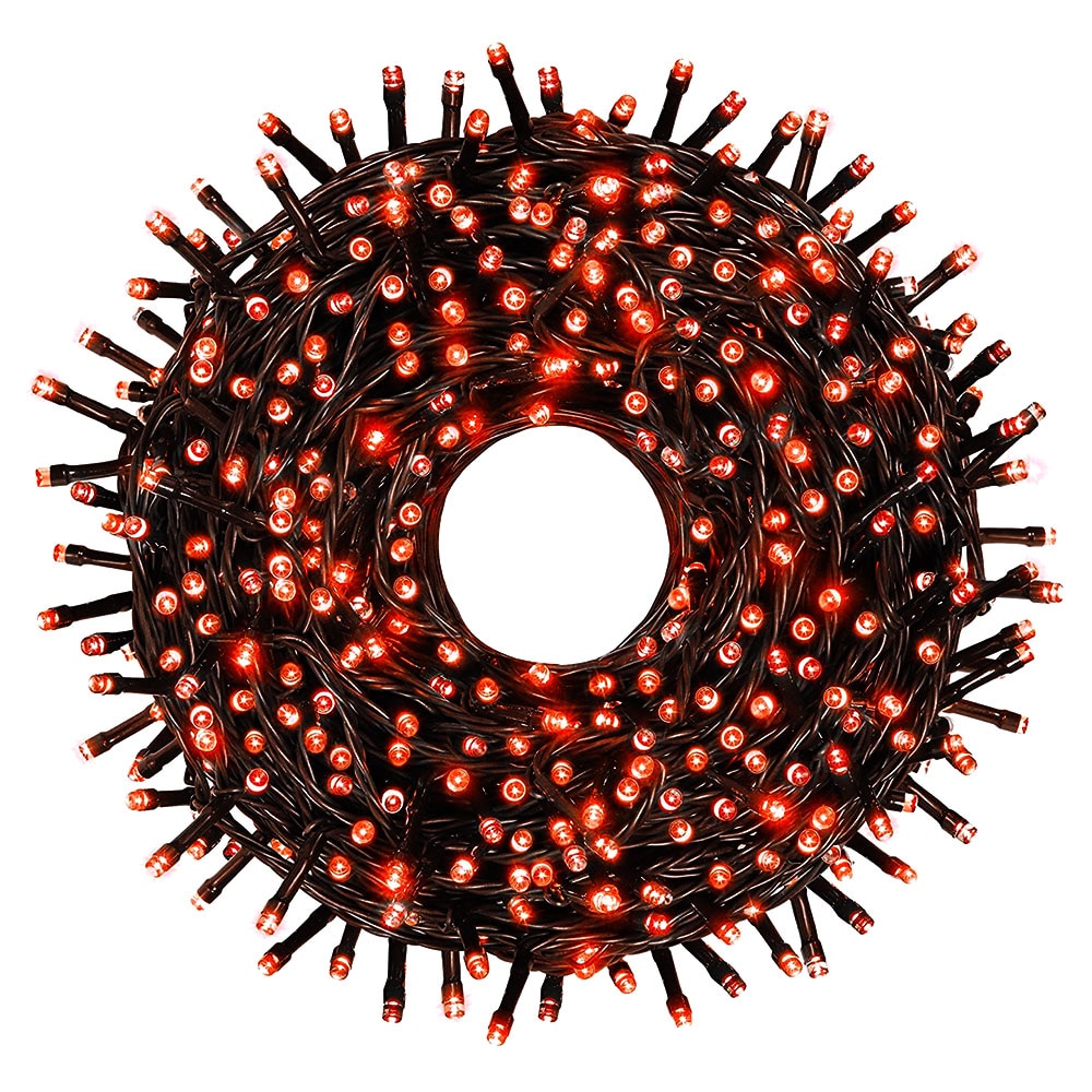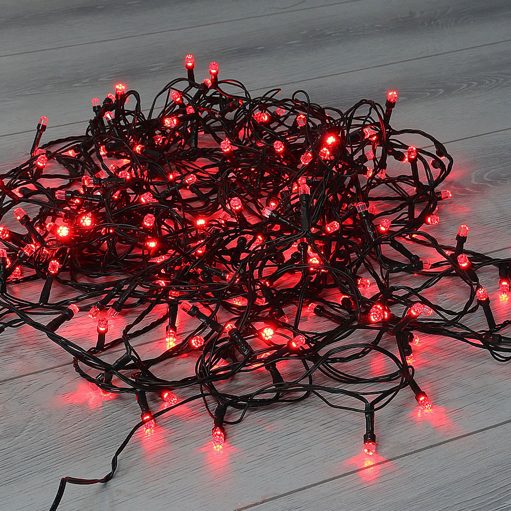 Instalatie de Craciun Liniara SIKS, Interior/Exterior, Rola 100m, 8 jocuri de lumini, Rosu, Fir Negru