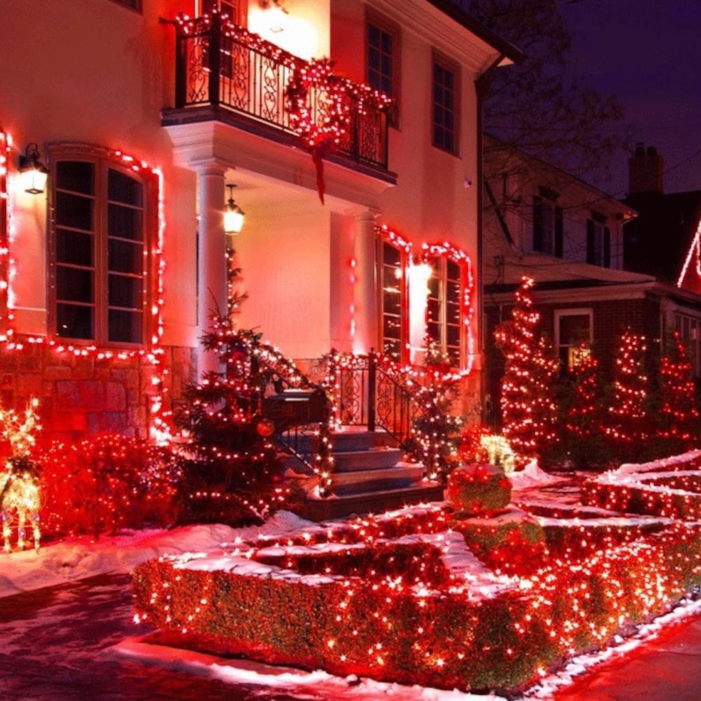Instalatie De Craciun Nextfarma®, Lungime 100 m, Cu 8 Jocuri De Lumini, Alimentare 220V, Protectie IP44, Pentru Interior/Exterior, Rosu