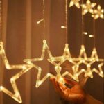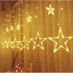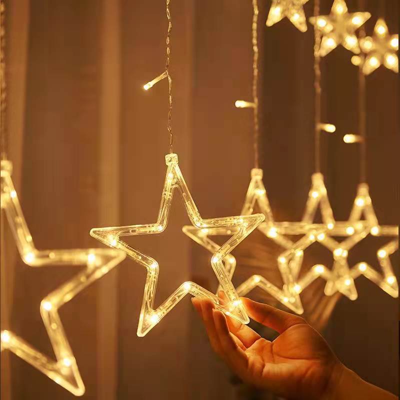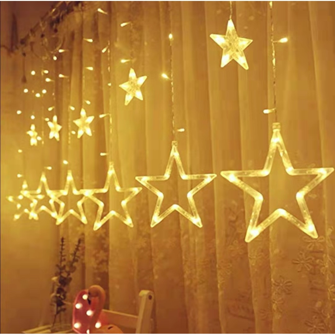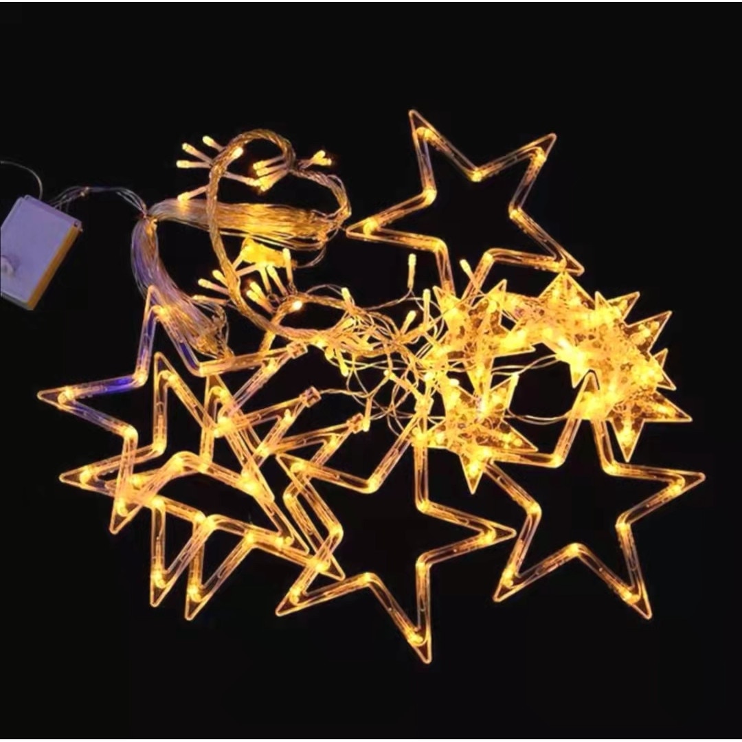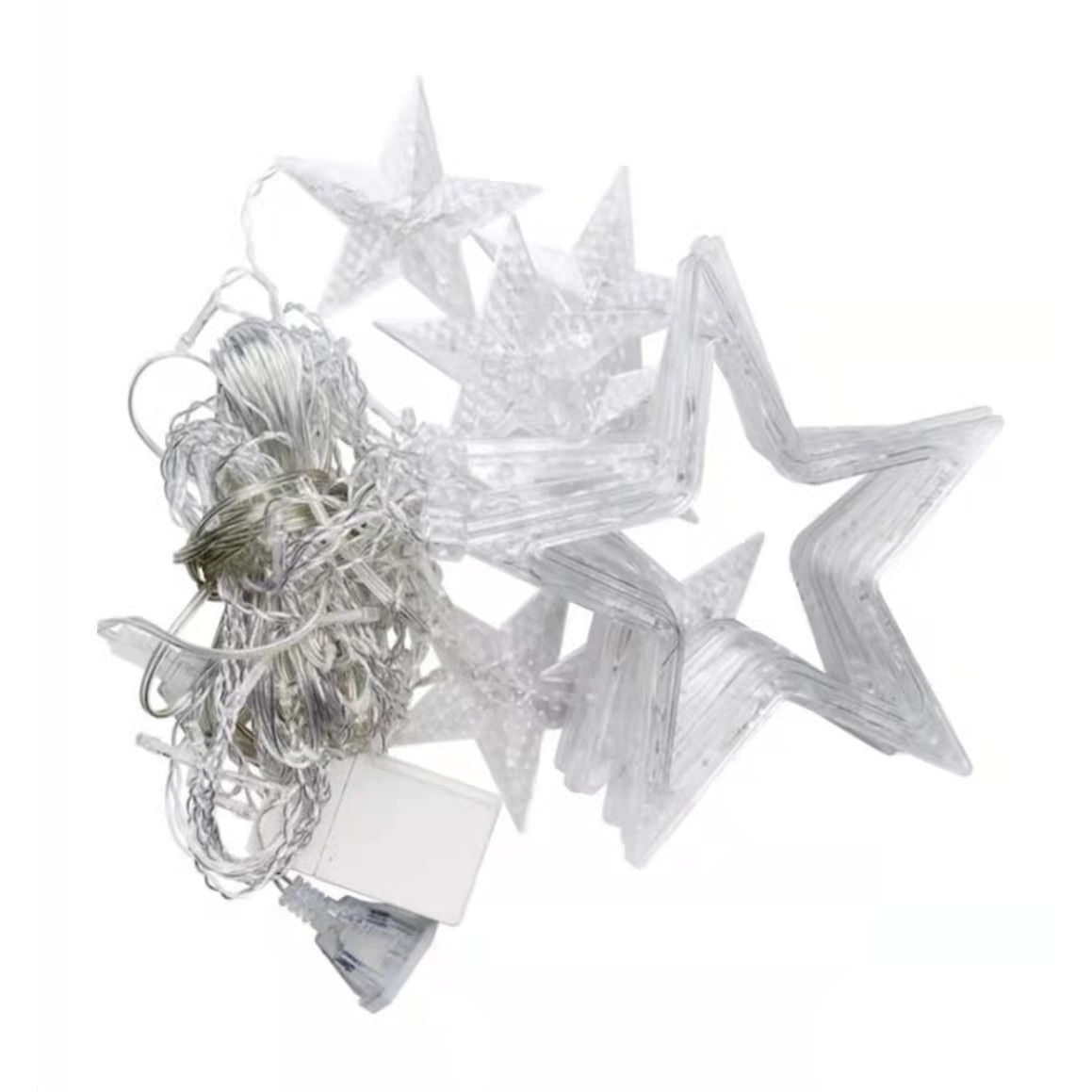 Instalatie Luminoasa de Craciun 12 Stele cu LED,Prelungibila cu stecher pentru instalatii similare, cu fir incolor.