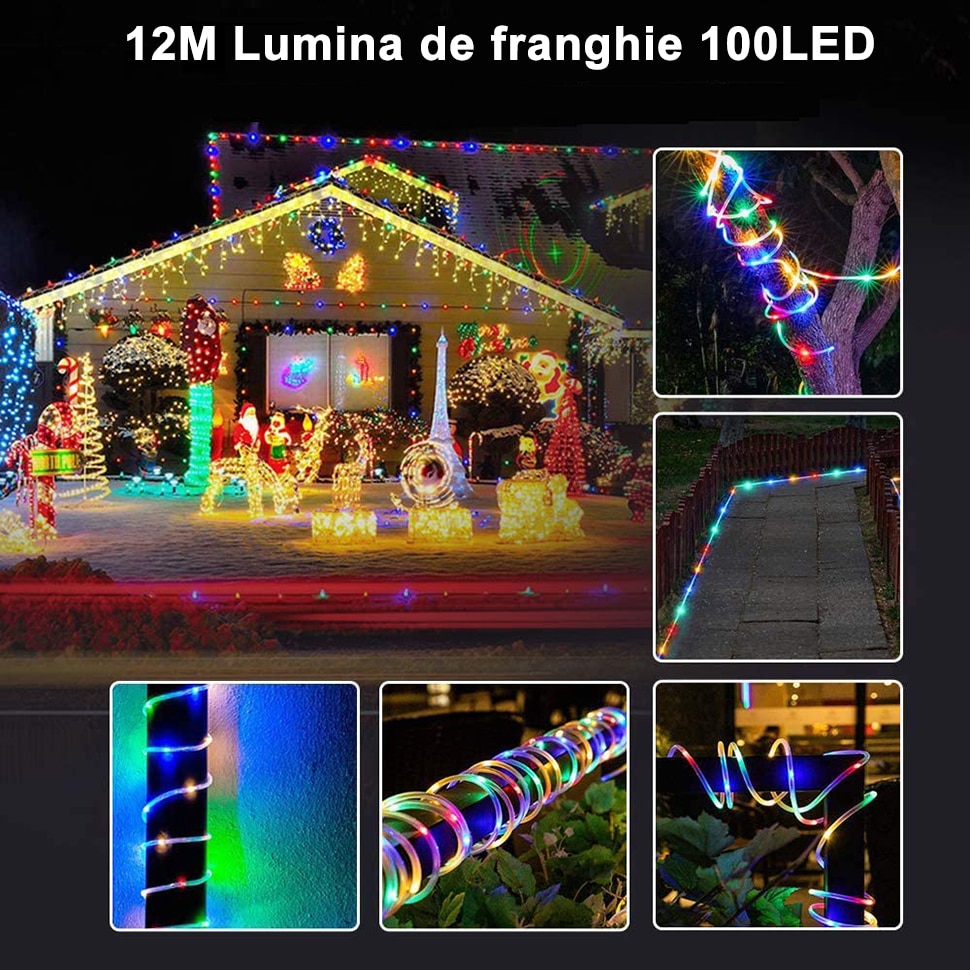 Lumina de franghie solara de inalta calitate – Lumina noastra de franghie solara cu 100 de becuri cu LED cu emisii reduse de caldura este complet acoperita de tuburi din PVC transparent, tubul luminilor licurici este durabil si flexibil, cu un unghi de vizualizare constant de 360 de grade pe care il lumineaza in toate directiile, Ideal pentru decorarea gradinilor, terasei, portii, curtii, nuntii, petrecerii, Craciunului.