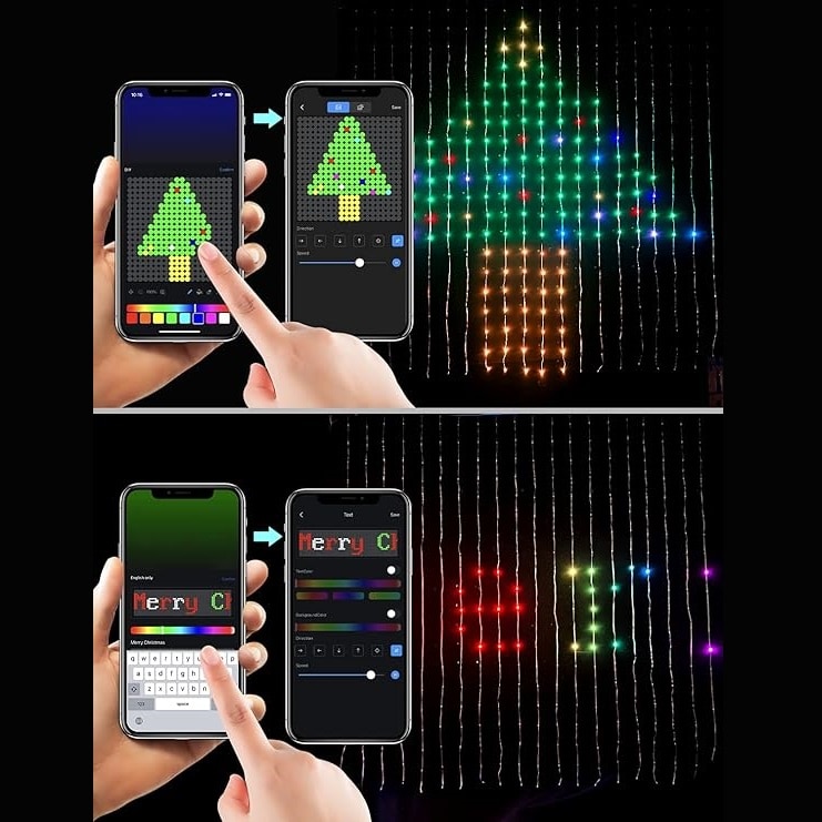 Unul dintre cele mai placute aspecte ale perdelelor noastre luminoase cu LED-uri este ca puteti adauga tone de imagini personalizate modelelor luminoase, inclusiv emoji-uri, mesaje si animale sau creatii pixelate pe care toata lumea le va placea.
