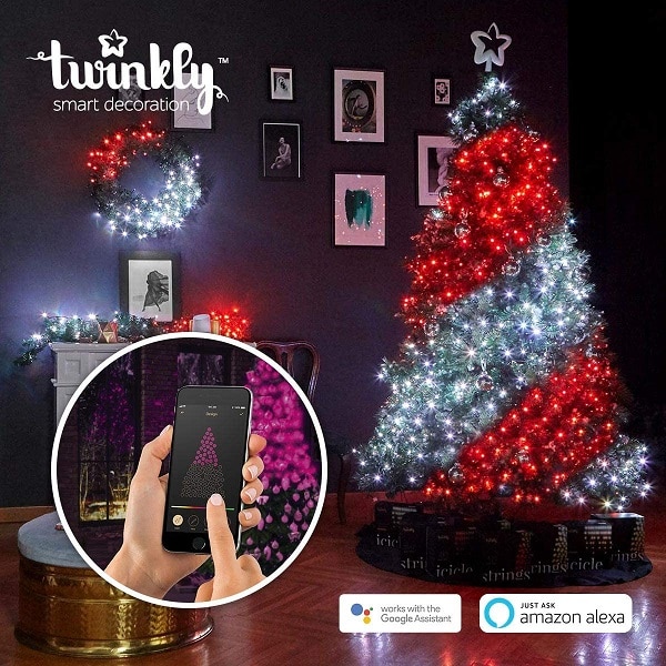Instalatie luminoasa pentru Craciun cu WiFi, Google Assistant si Alexa, 250 LED, Twinkly generatia II,16 milioane de culori, 20.5 metri, controlabila de pe smartphone, pentru interior sau exterior