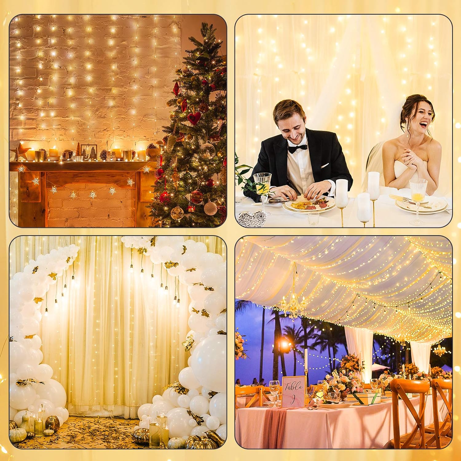 Instalatie luminoasa perdea, inclusa, 300 de LED-uri, interconectabila, 3M × 3M, 8 moduri, lumina calda