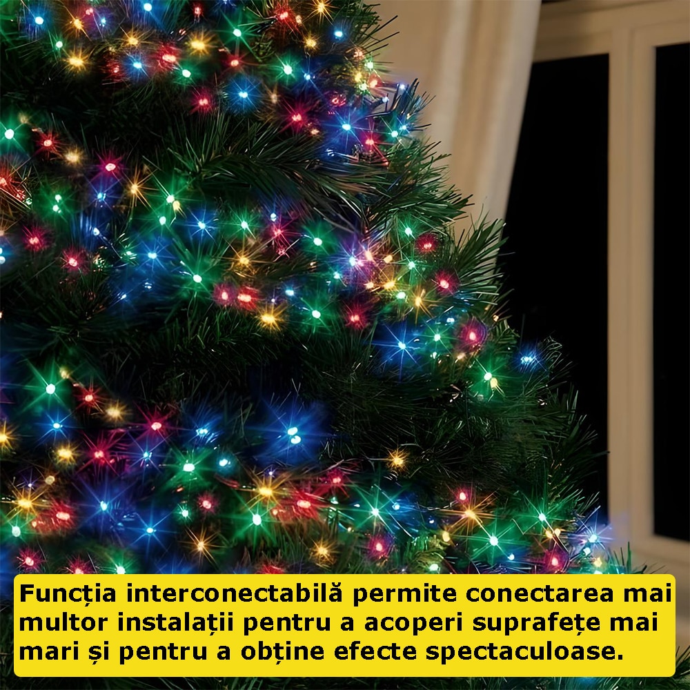 Instalatie Luminoasa De Craciun Liniara 2 in 1 SIKS Alb Cald Si Multicolora, 30 Metri, 150 Led-uri, Pentru Interior Si Exterior, 11 Jocuri De Lumini, Cu Control Din Telecomanda, Alimentare la Priza