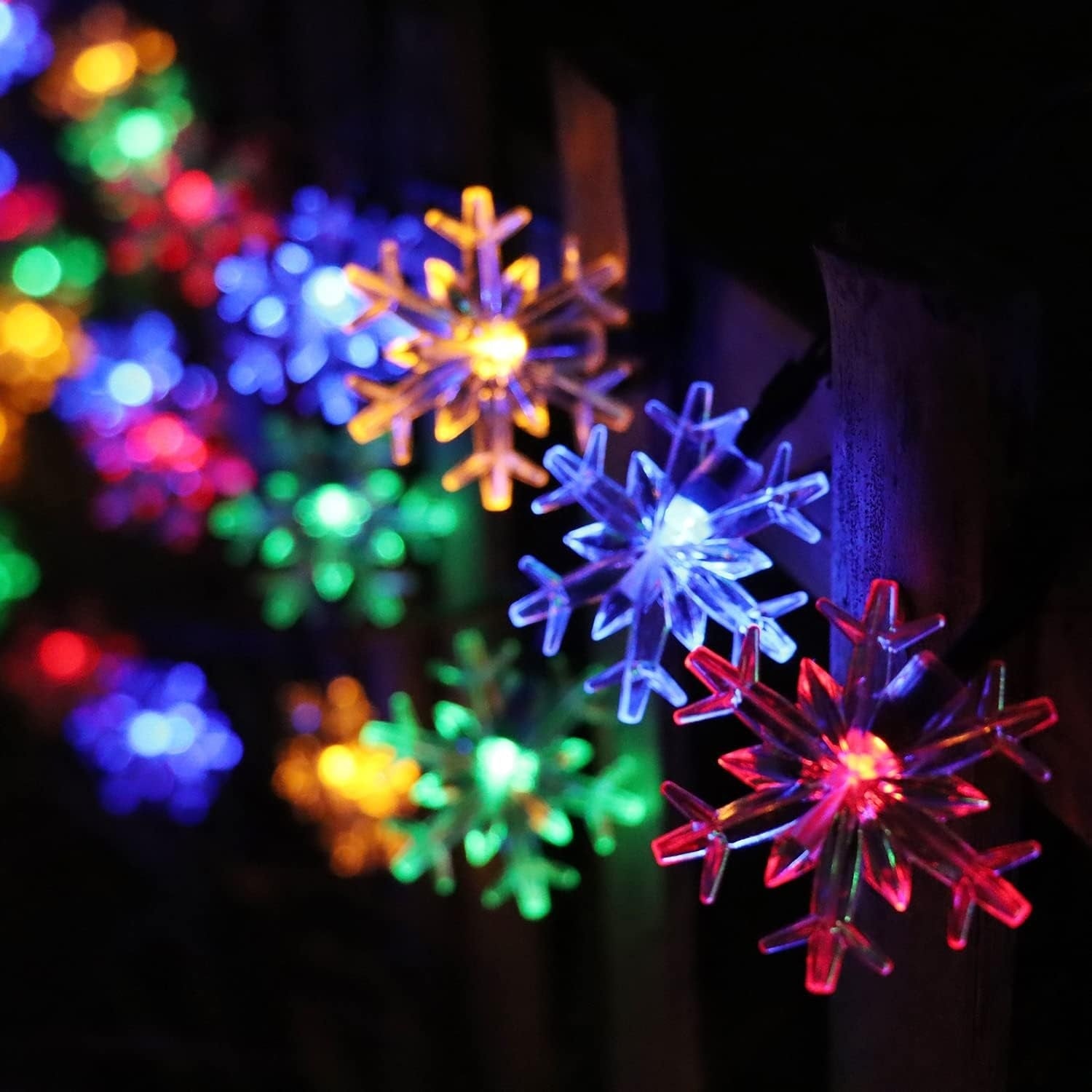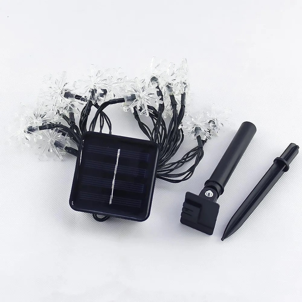 Instalatie Solara cu 50 Fulgi de Nea, Cristal LED, Lumina Multicolora, 7m Lungime