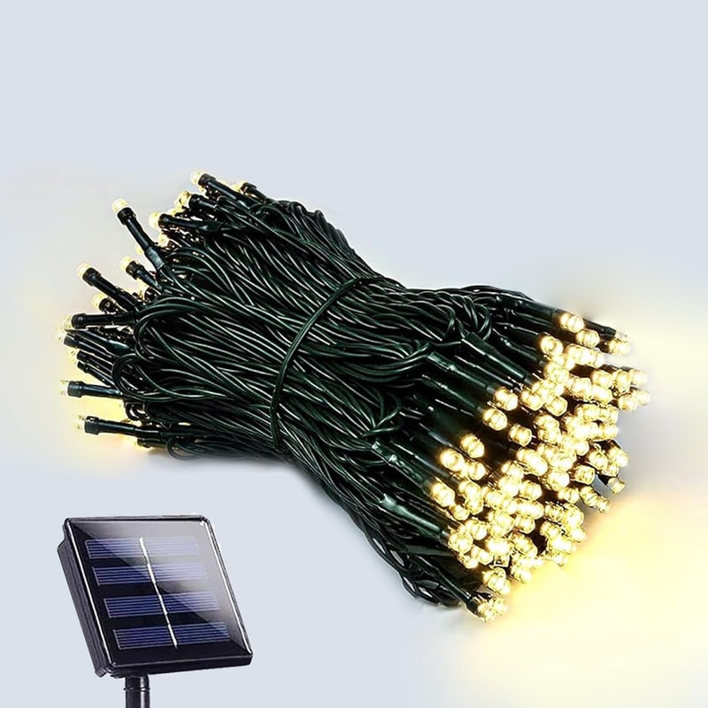 Instalatie Solara de Exterior, 8 Moduri de Iluminare, Impermeabila, Alb Cald, 7m